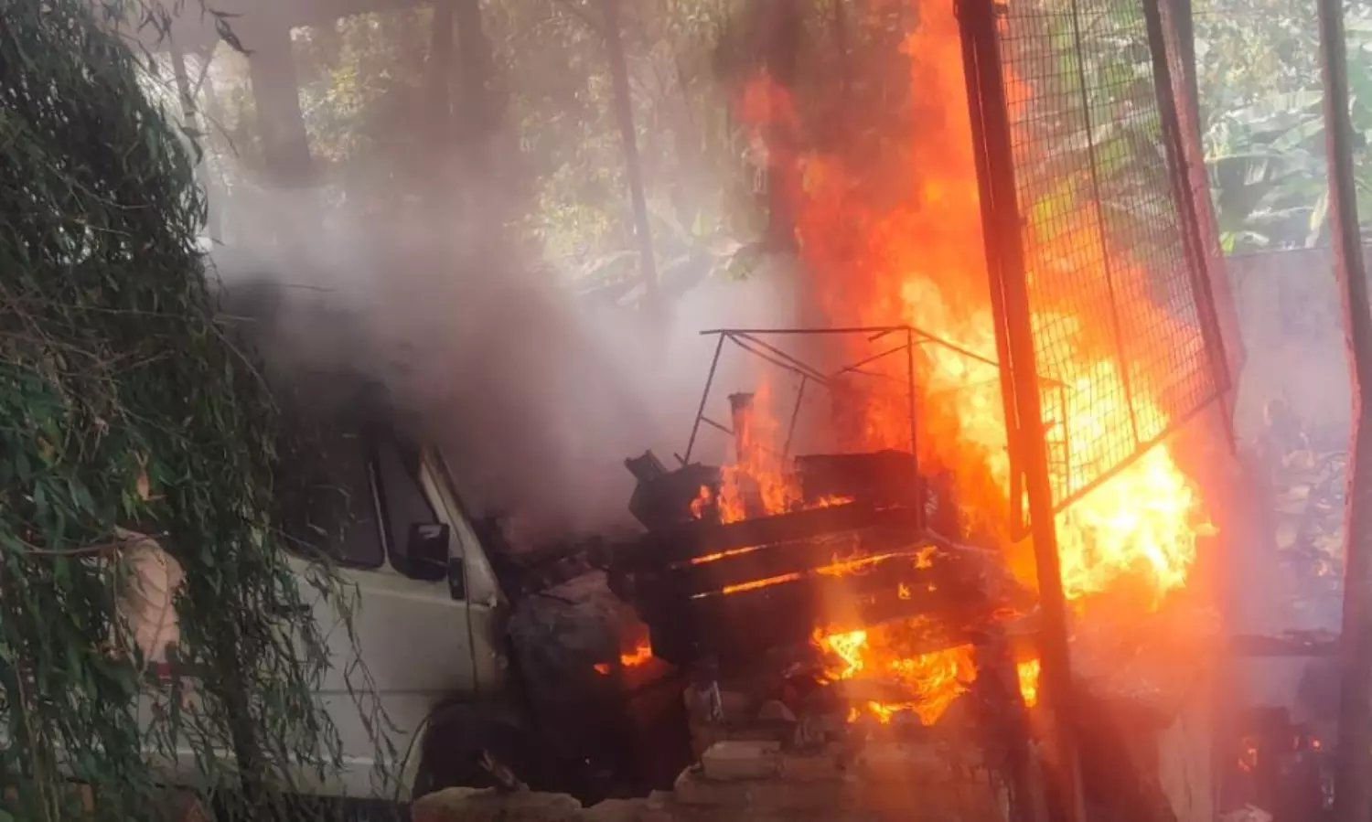 ചപ്പുചവറുകൾക്ക് തീയിട്ടു; വീട്ടിൽ നിർത്തിയിട്ടിരുന്ന ടെമ്പോ ട്രാവലറും ബൈക്കും സൈക്കിളും കത്തിനശിച്ചു