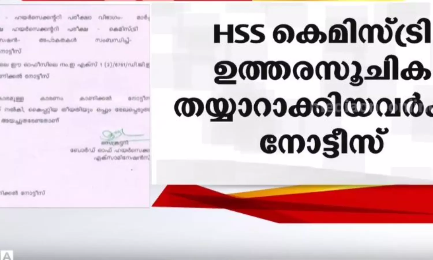 കെമിസ്ട്രി ഉത്തരസൂചിക തയ്യാറാക്കിയ 12 അധ്യാപകർക്ക് കാരണം കാണിക്കൽ നോട്ടീസ്