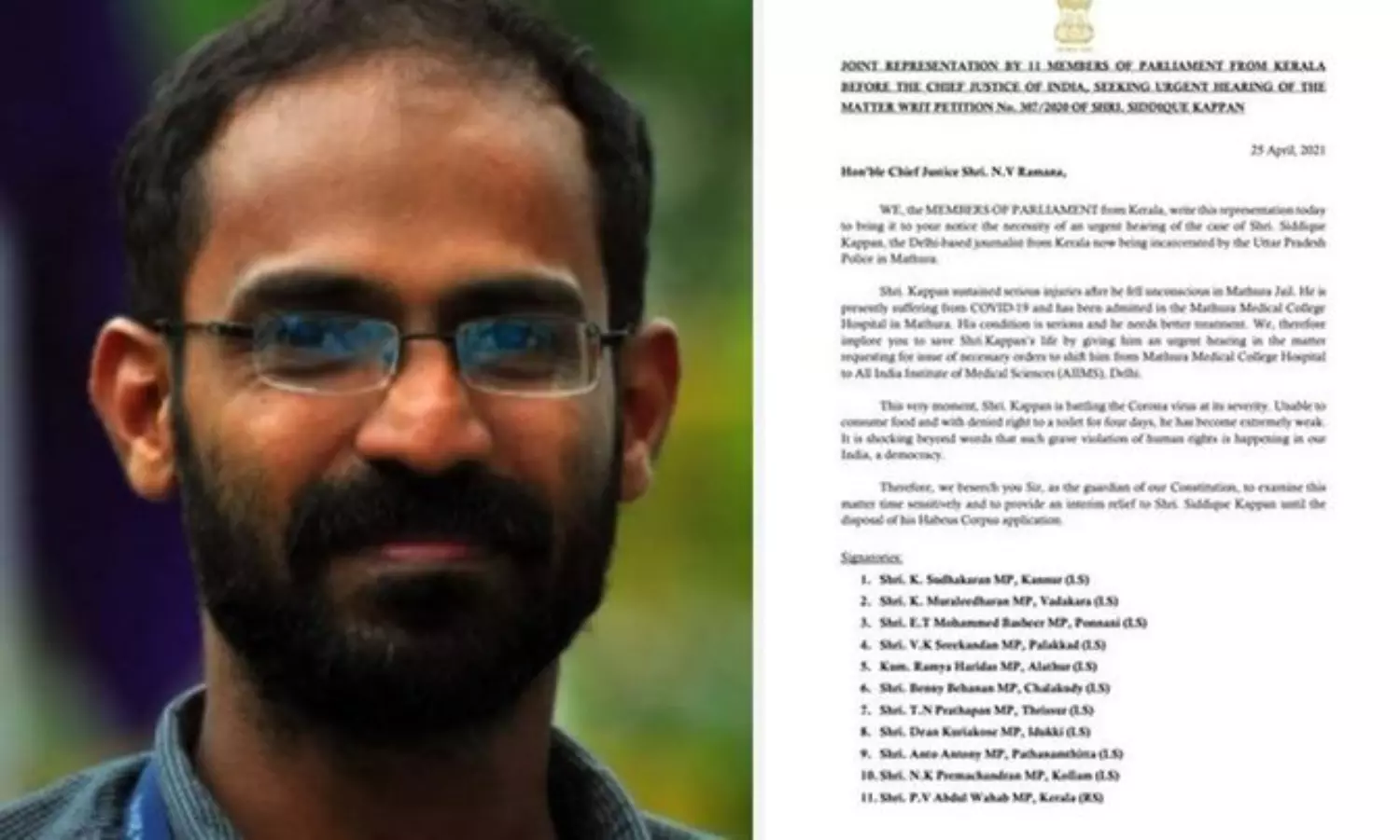 സിദ്ദിഖ് കാപ്പനെ എയിംസിലേയ്ക്ക് മാറ്റണം; സുപ്രീംകോടതി ചീഫ് ജസ്റ്റിസിന് 11 എം.പിമാർ സംയുക്തമായി കത്ത് നൽകി