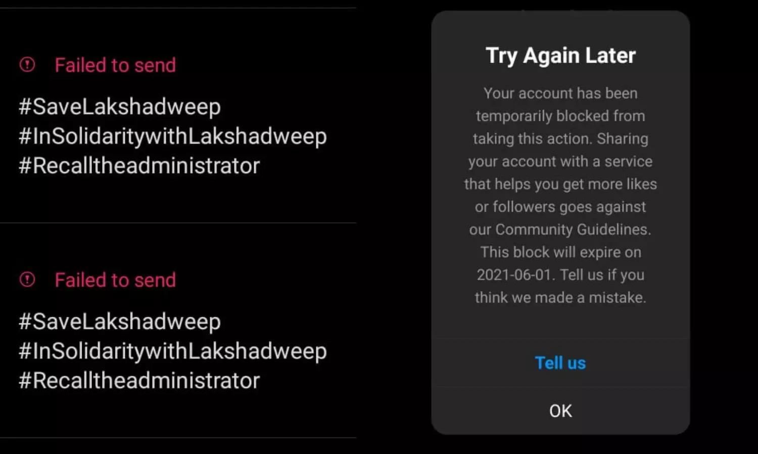ലക്ഷദ്വീപ് പ്രതിഷേധങ്ങൾക്ക് ട്വിറ്ററിലും ഇൻസ്റ്റാഗ്രാമിലും നിയന്ത്രണം