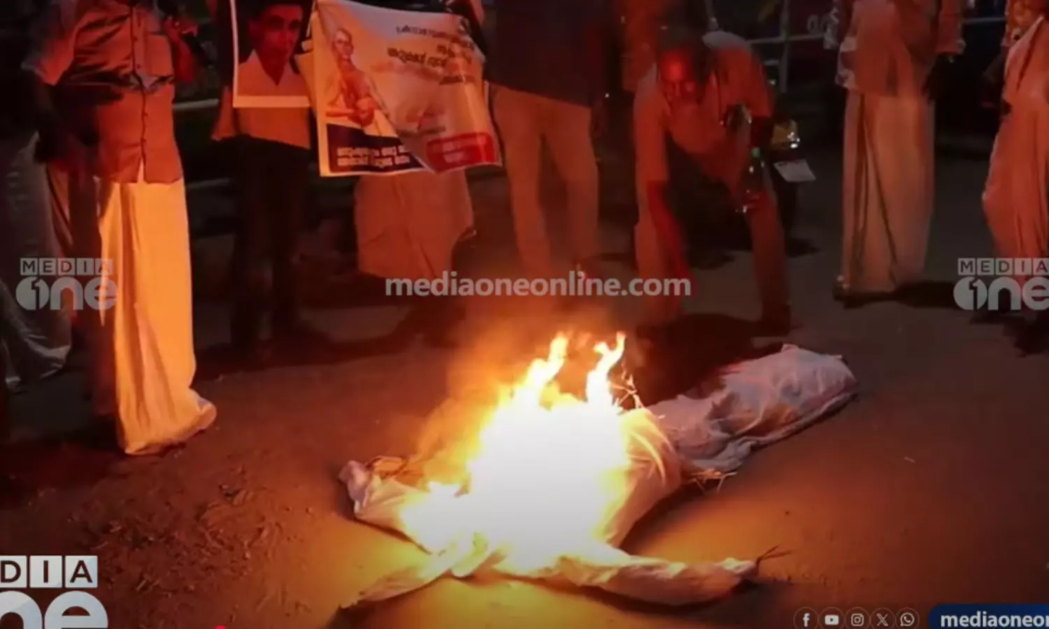 സച്ചിദാനന്ദ സ്വാമിക്കെതിരായ അധിക്ഷേപം; സുകുമാരൻ നായരുടെ കോലം കത്തിച്ച് പ്രതിഷേധം