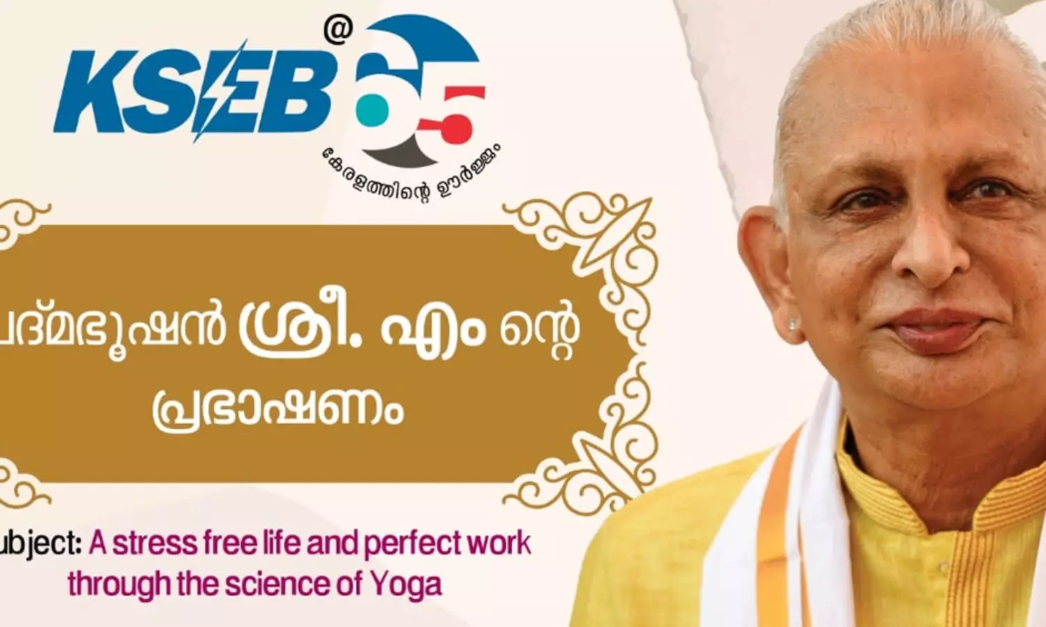 തിരുവനന്തപുരം: കെ.എസ്.ഇ.ബിയുടെ 65ആം വാര്ഷികത്തോട് അനുബന്ധിച്ചുള്ള പ്രഭാഷണ പരമ്പര സംഘപരിവാര് സഹയാത്രികനായ ശ്രീ എം ഉദ്ഘാടനം ചെയ്യും. മാര്ച്ച് 31ന് ഉച്ചയ്ക്ക് 12 മണിക്ക് തിരുവനന്തപുരം വൈദ്യുതിഭവന് ഓഡിറ്റോറിയത്തിലാണ് പ്രഭാഷണം. 'പിരിമുറുക്കമില്ലാത്ത ജീവിതവും ജോലിയും യോഗയിലൂടെ' എന്ന വിഷയത്തിലാണ് പ്രഭാഷണമെന്ന് കെ.എസ്.ഇ.ബി അറിയിച്ചു.