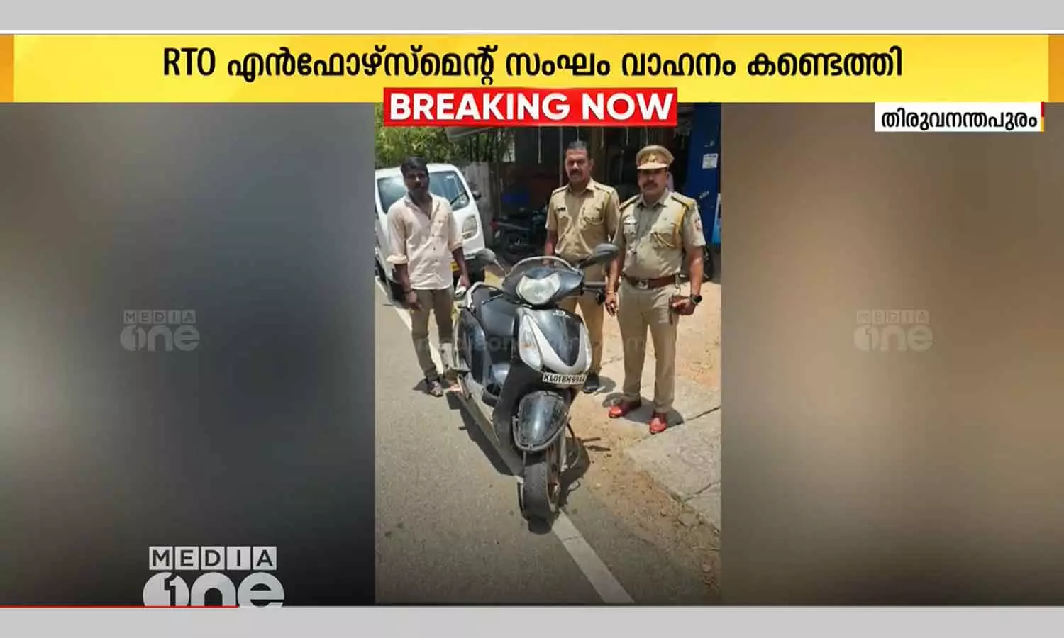 കഴിഞ്ഞ വർഷം തിരുവനന്തപുരം ചാലയിൽനിന്ന് മോഷണം പോയ വാഹനമാണ് ആർ.ടി.ഒ എൻഫോഴ്സ്മെന്റ് കണ്ടെത്തിയത്.