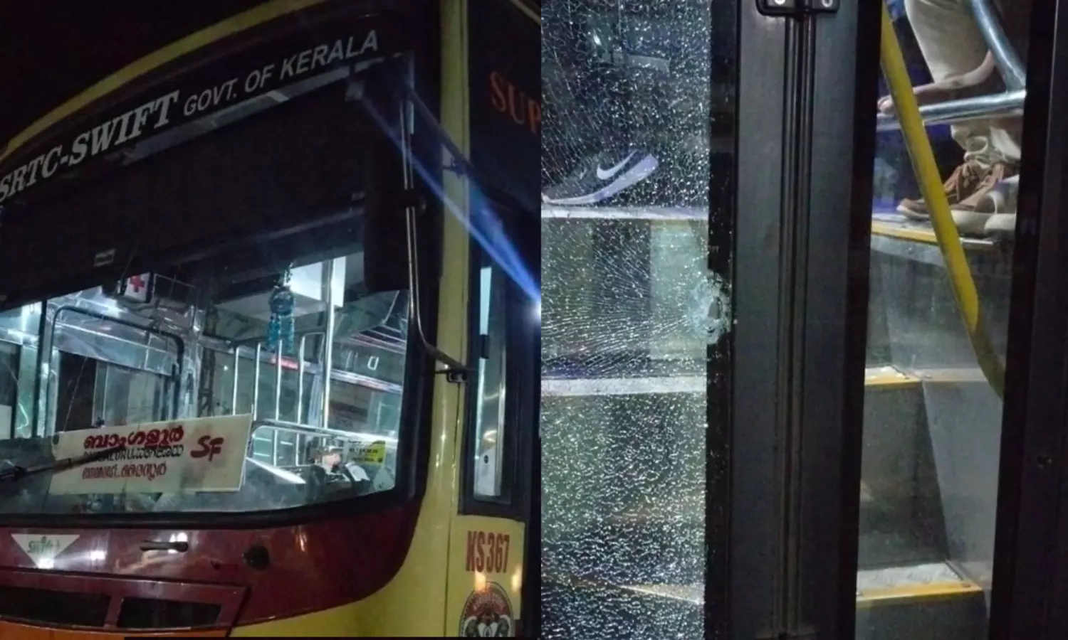 കോഴിക്കോട്ട് നിന്നും ബെംഗളൂരുവിലേക്ക് പോകുകയായിരുന്ന ബസിന് നേരെയാണ് കല്ലേറുണ്ടായത്. അക്രമിയെ പൊലീസ് പിടികൂടി. താമരശ്ശേരി ചുങ്കം ഇരുമ്പിൻ ചീടൻ കുന്ന് കല്യാണിയുടെ മകൻ ബാബുവാണ് പിടിയിലായത്. ബസിന്റെ പിൻഭാഗത്തെ ഡോറിന്റെ ഗ്ലാസ് പൂർണമായും തകർന്നു. . ബസ് താമരശ്ശേരി പൊലീസ് സ്റ്റേഷനിലേക്ക് മാറ്റി.