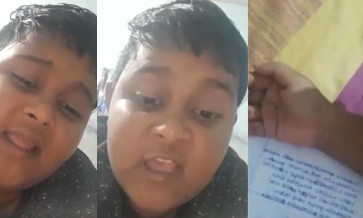 'ഈ പഠിത്തം പഠിത്തം എന്നൊക്കെ പറയുന്നുണ്ടല്ലോ ടീച്ചർമാരേ.. ഈ പഠിത്തം എന്താ സാധനം ടീച്ചർമാരേ.. ഈ പഠിച്ചു പഠിച്ചു പഠിച്ച് എന്റെ തല കേടാവുന്നുണ്ട് കേട്ടോ.. ഇങ്ങള വിചാരം ഞങ്ങള് പഠിക്കുന്നില്ലെന്ന്.. ഞങ്ങള വിചാരം ഇവരിങ്ങനെ ഇട്ടിട്ടിട്ട്.. എനിക്ക് വെറുത്തു ടീച്ചര്മാരേ.. സങ്കടത്തോടെ പറയുകയാ ങ്ങളിങ്ങനെ ഇടല്ലീ.. ഈ ഗ്രൂപ്പും ഒക്കെ ഉണ്ടാക്കിയിട്ട്.. ങ്ങളിതിതെന്തിനാ എന്നോട്.. എഴുതാനിടുവാണങ്കി ഇത്തിരി ഇടണം അല്ലാണ്ട് അത് പോലിടരുത് ടീച്ചർമാരേ... ഞാനങ്ങനെ പറയല്ല... ടീച്ചര്മാരേ ഞാൻ വെറുത്ത്.. പഠിത്തന്ന് പറഞ്ഞാ എനിക്ക് ഭയങ്കര ഇഷ്ടാ.. ങ്ങളിങ്ങനെ തരല്ലേ.