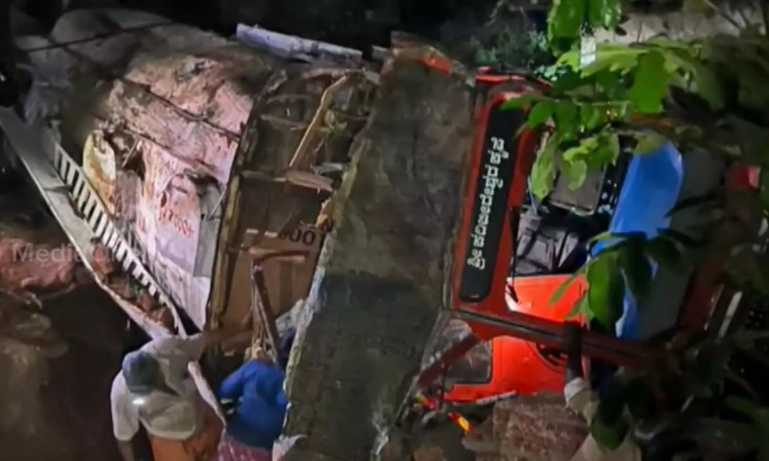 ഡീസലുമായി വന്ന ടാങ്കർ ലോറി വീടിന് മുകളിലേക്ക് മറിഞ്ഞു; മൂന്ന് പേർക്ക് പരിക്ക്