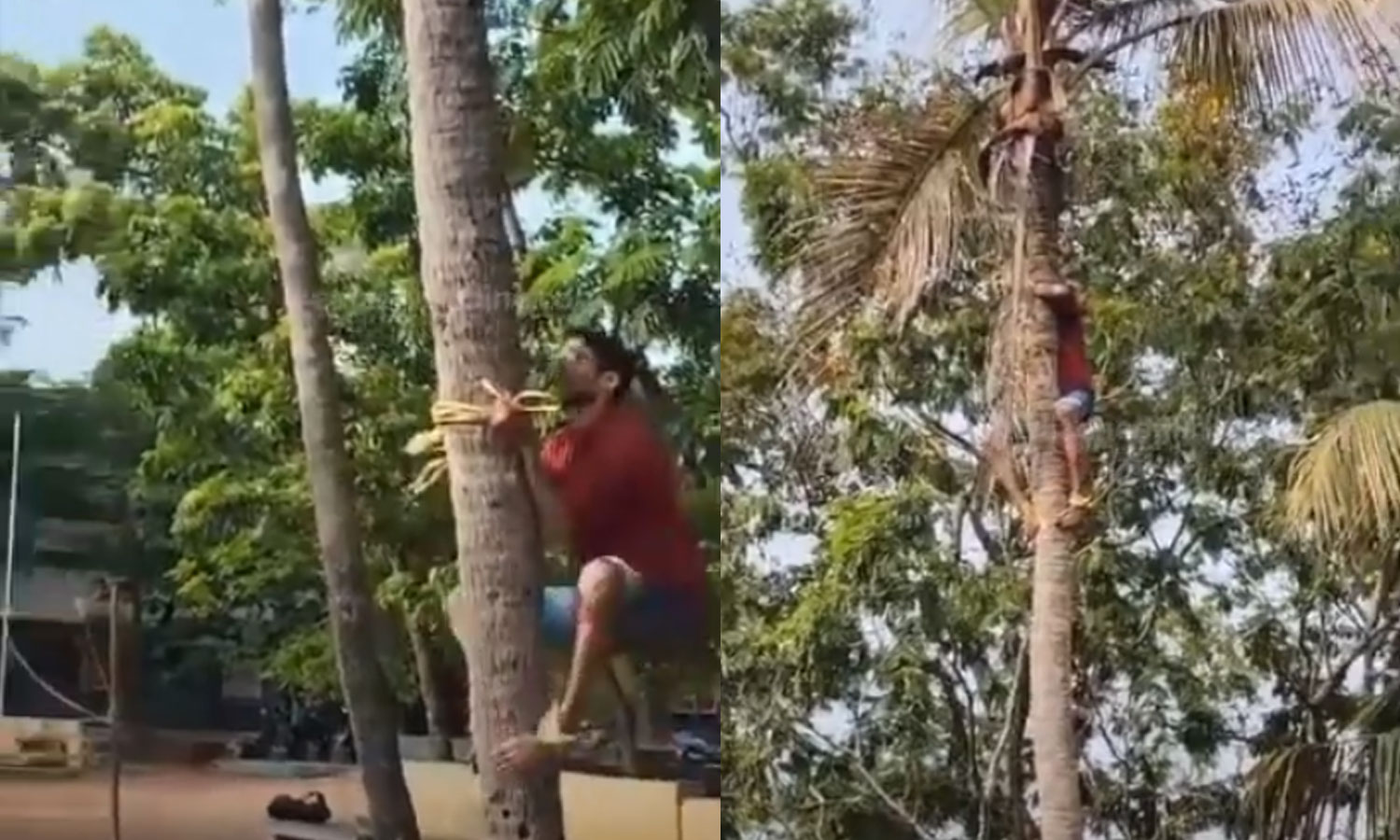 ലിനീഷ് തെങ്ങിൽകയറുന്ന വീഡിയോ സോഷ്യൽമീഡിയയിലും വൈറലായി