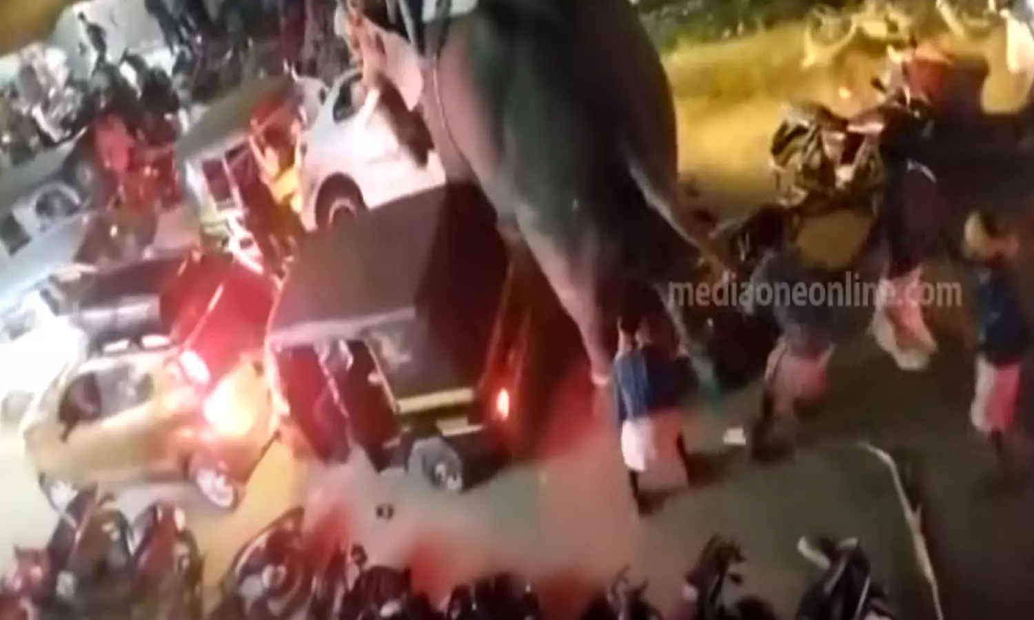 പാലക്കാട് മാത്തൂർ തെരുവത്ത് പള്ളിയിലെ ആണ്ടു നേർച്ചയ്ക്കിടയിൽ ആന വിരണ്ടോടി; നിരവധി വാഹനങ്ങൾ തകർത്തു