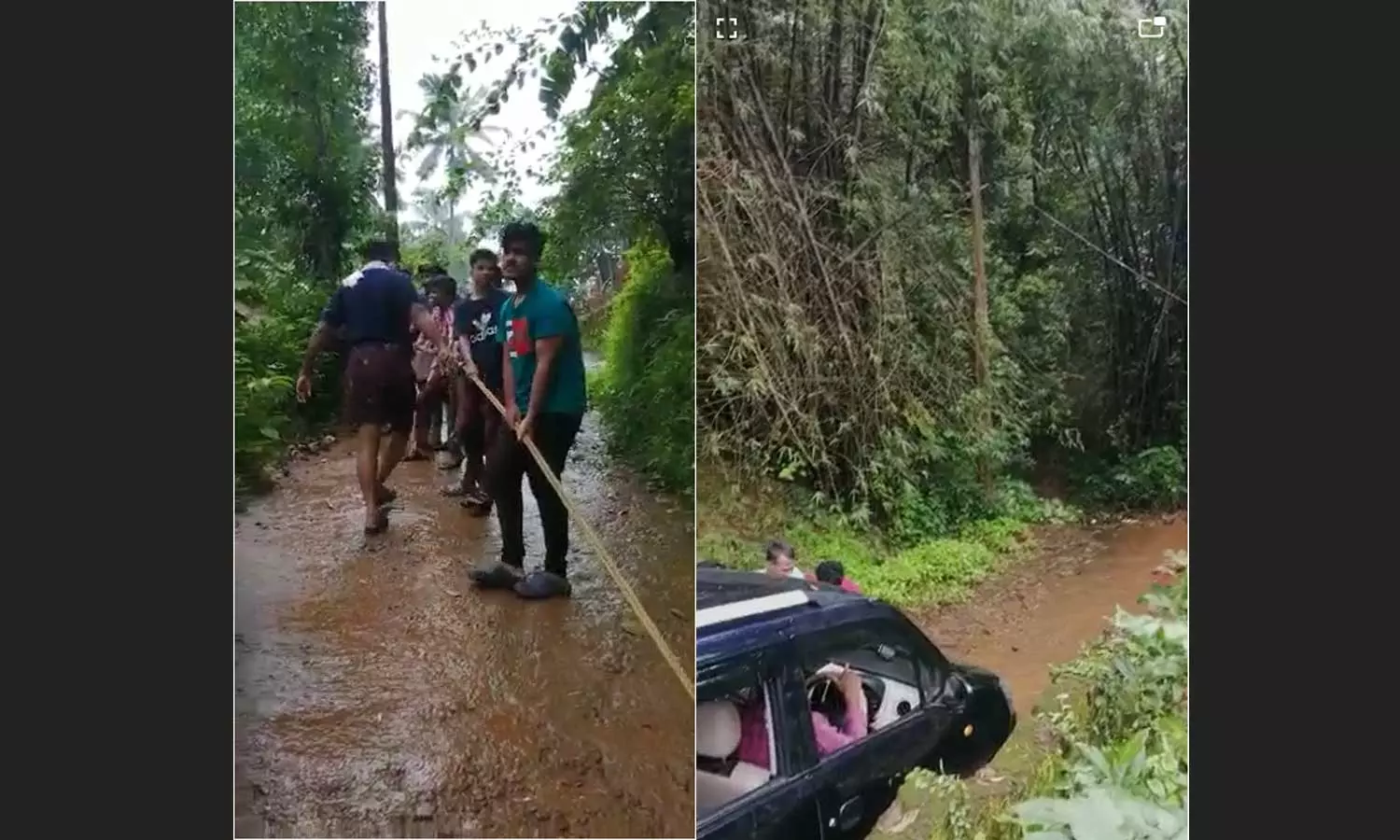 ഗൂഗിൾ മാപ്പ് നോക്കി യാത്ര ചെയ്ത കുടുംബം രാത്രി എത്തിപ്പെട്ടത് പാടത്ത്; നാട്ടുകാർ വടംകെട്ടി വലിച്ച് രക്ഷപ്പെടുത്തി