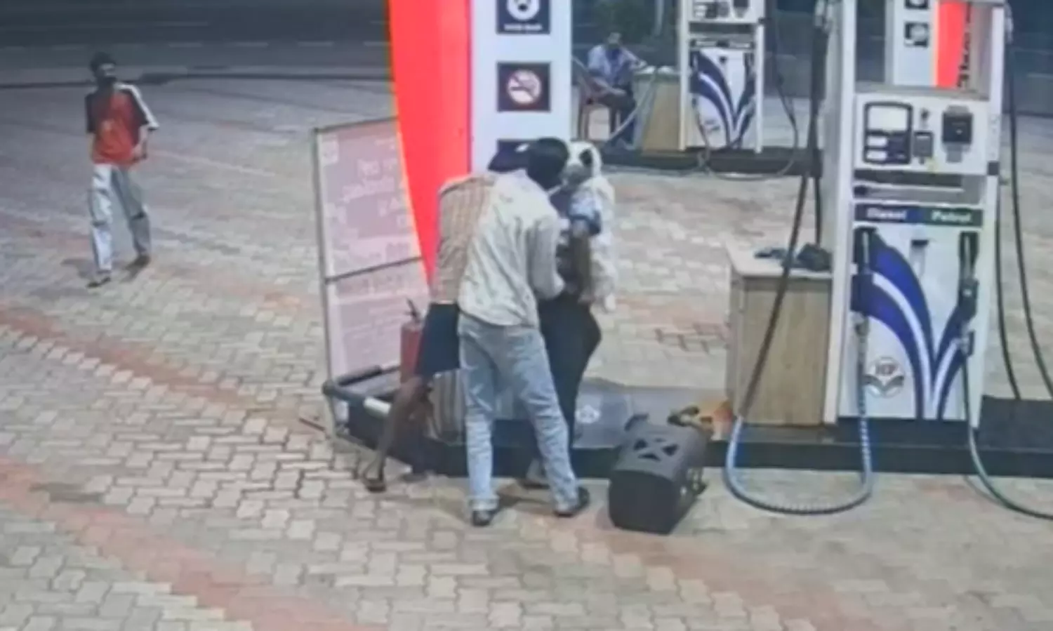പെട്രോള് പമ്പിലെ ആക്രമണത്തിന്റെ ദൃശ്യം