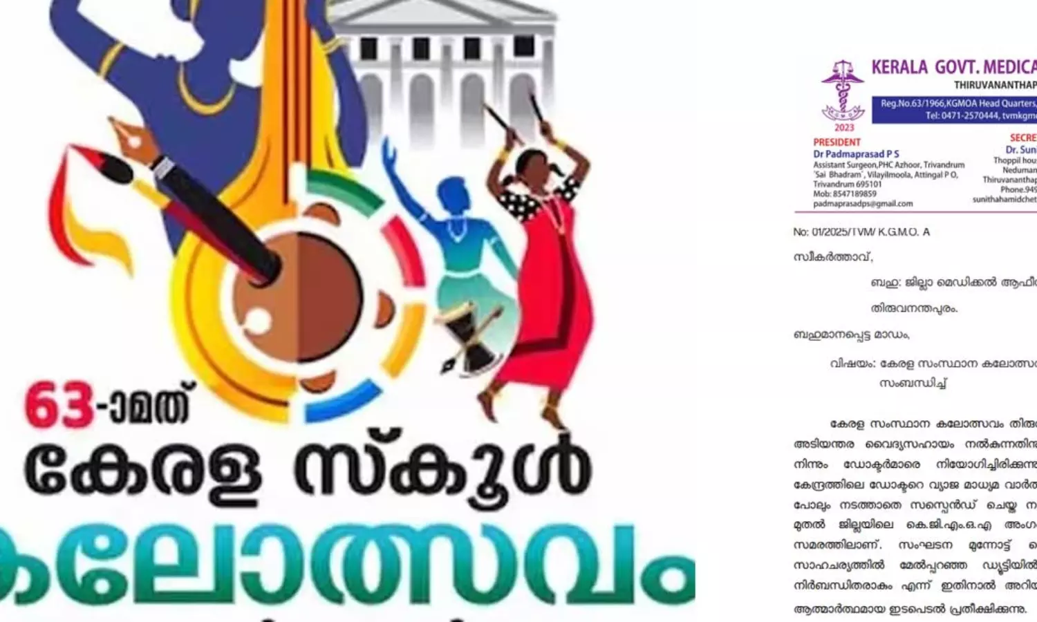 കലോത്സവ നഗരിയില് ഡോക്ടറുടെ സേവനമുണ്ടാകില്ല; സഹകരിക്കില്ലെന്ന് ഡിഎംഒയ്ക്ക് കത്ത് നല്കി