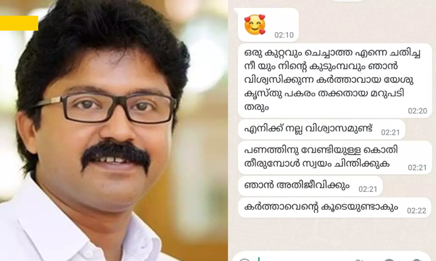 ഒരു കുറ്റവും ചെയ്യാത്ത എന്നെ ചതിച്ച നിനക്ക് കർത്താവ് മറുപടി തരും; ഒളിവില്‍ കഴിയുന്നതിനിടെ സാക്ഷിക്ക് എല്‍ദോസ് കുന്നപ്പിള്ളിലിന്‍റെ ഭീഷണി സന്ദേശം