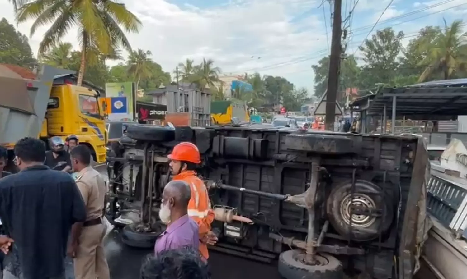 സംഭവസ്ഥലത്തേക്ക് പുറപ്പെട്ട ഫയർഫോഴ്സിന്റെ വാഹനവും അപകടത്തിൽ പെട്ടു