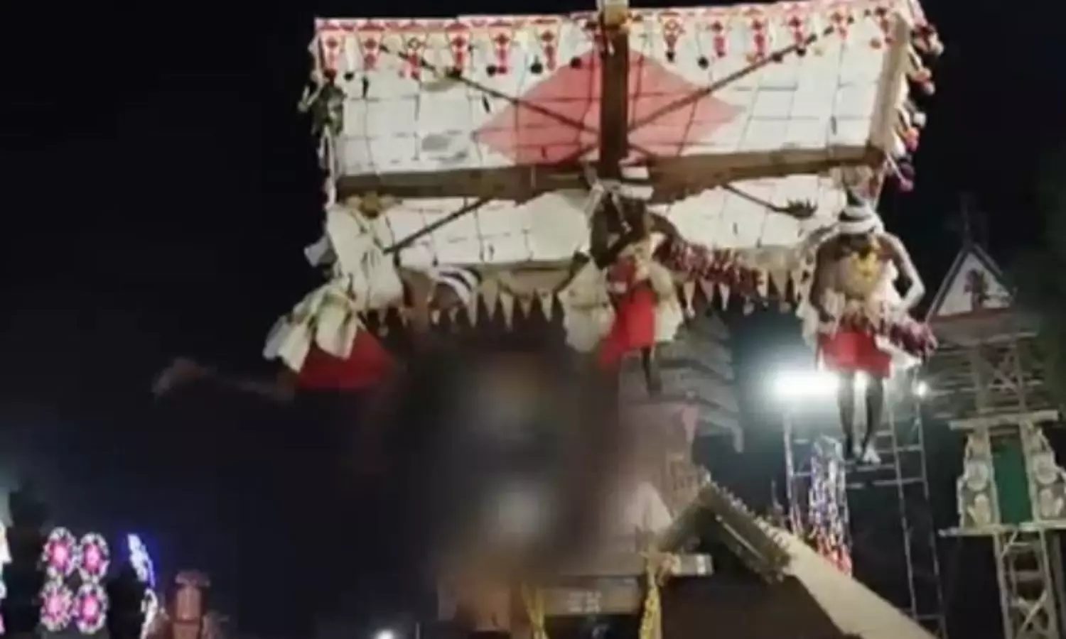 പത്തു മാസം പ്രായമുള്ള കുഞ്ഞാണു മൂന്നാള്‍ പൊക്കത്തില്‍നിന്നു വഴിപാട് നടത്തിയയാളുടെ കൈയില്‍നിന്നു തെറിച്ചു താഴെവീണത്. തൂക്കുവില്ല് ഉയര്‍ത്തുകയും താഴ്ത്തുകയും ചെയ്യുന്നതിനിടെയായിരുന്നു അപകടം. കുഞ്ഞിനെ ആശുപത്രിയിൽ പ്രവേശിപ്പിച്ചിട്ടുണ്ട്. മാതാപിതാക്കൾ വഴിപാടായാണ് തൂക്കം നടത്തുന്നത്. പരാതി ഇല്ലാത്തതിനാൽ പൊലീസ് കേസെടുത്തിരുന്നില്ല.