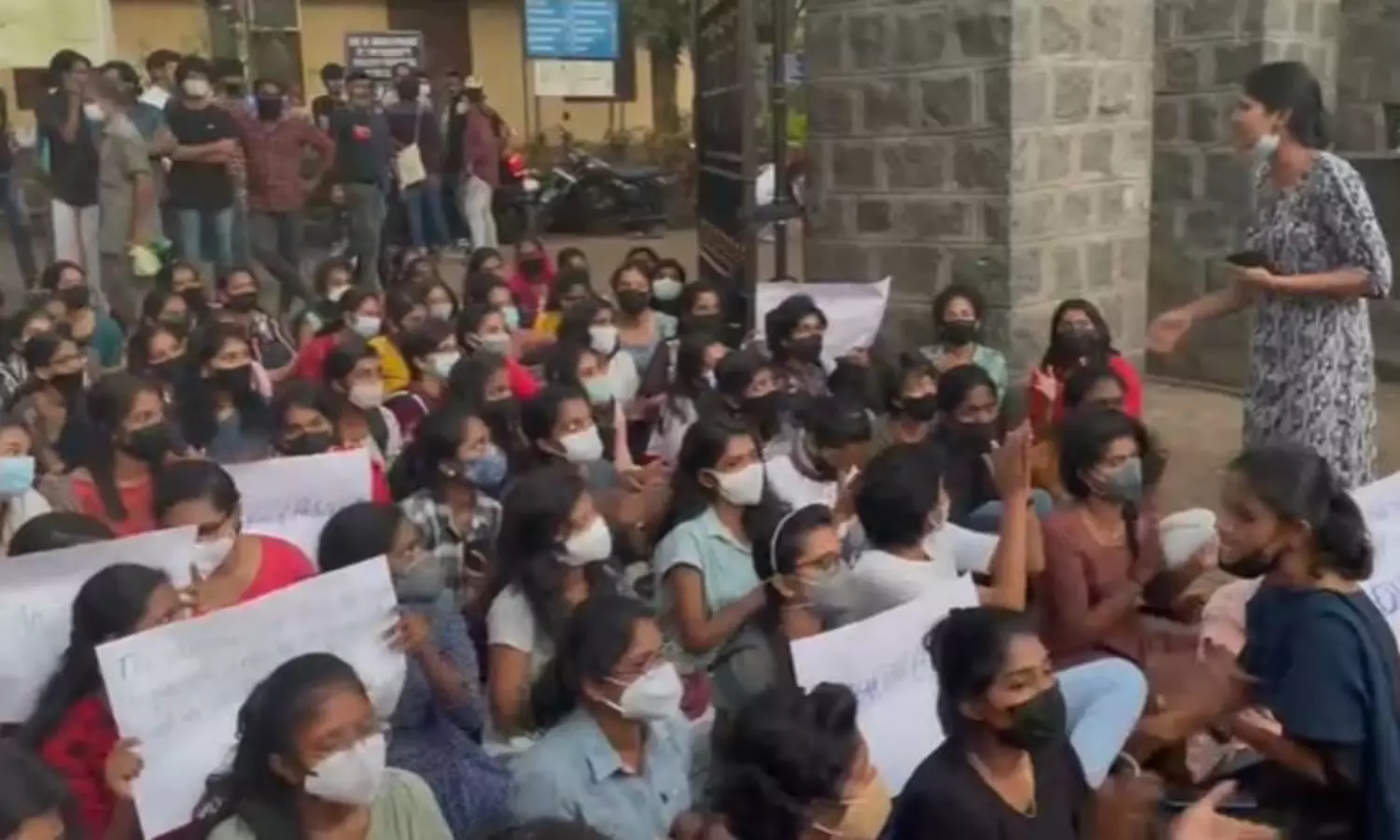 ഹോസ്റ്റലിൽ പ്രവേശിക്കുന്നതിനുള്ള സമയ പരിധി നീട്ടണം; റോഡ് ഉപരോധിച്ച് വിദ്യാർഥിനികളുടെ പ്രതിഷേധം