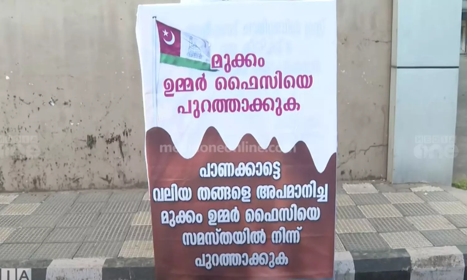 ഉമർ ഫൈസി മുക്കത്തെ പുറത്താക്കണം; കോഴിക്കോട്ടെ സമസ്ത ഓഫീസിന് മുന്നിൽ ബോർഡ്