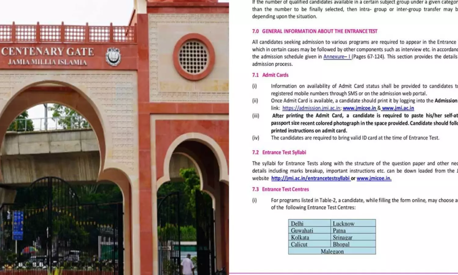 ജാമിഅ മില്ലിയ പ്രവേശന പരീക്ഷ; കോഴിക്കോട്ട് പരീക്ഷാ കേന്ദ്രം അനുവദിച്ച് സർവകലാശാല