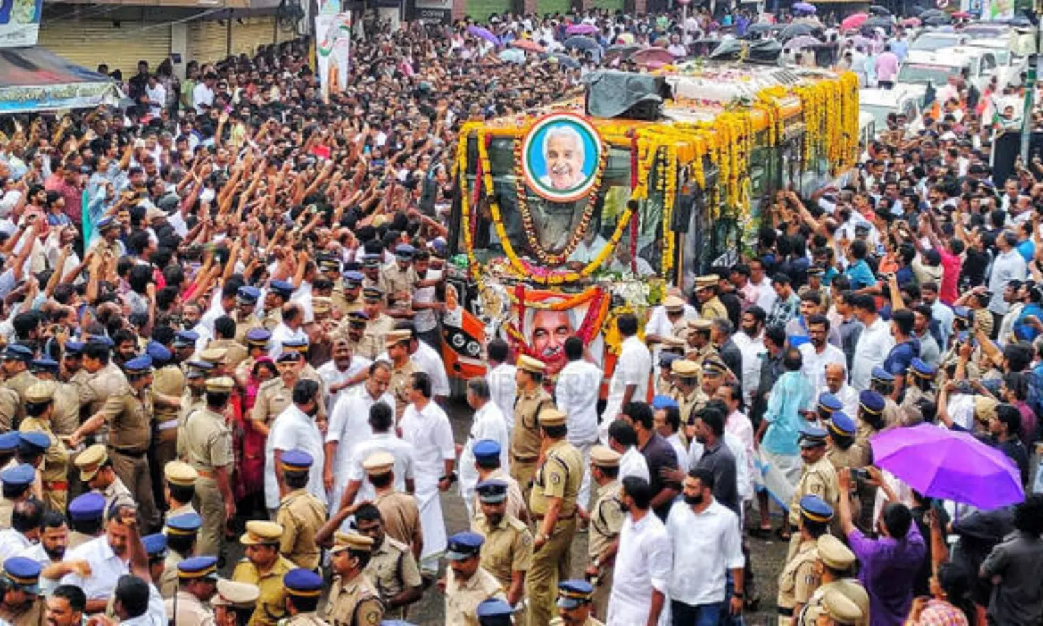 ഉമ്മന്ചാണ്ടിയുടെ മൃതദേഹവും വഹിച്ചുകൊണ്ടുള്ള വിലാപയാത്ര