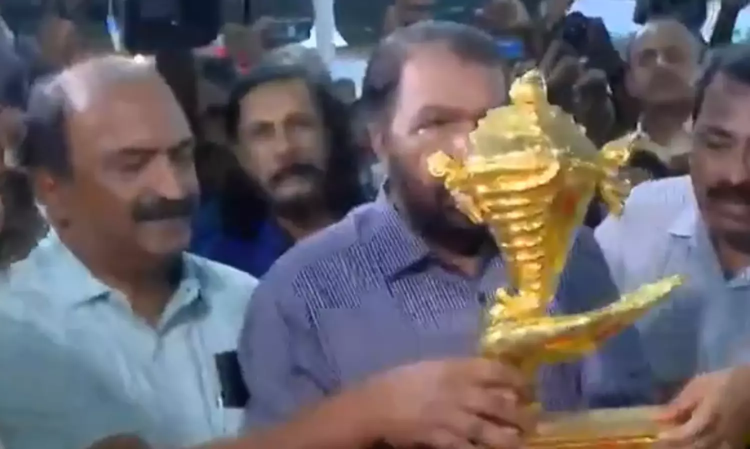 സ്വർണക്കപ്പ് ആശ്രാമത്തെ പ്രധാന വേദിയിൽ മന്ത്രിമാരായ വി ശിവൻകുട്ടി, കെ എൻ ബാലഗോപാൽ എന്നിവർ ചേർന്ന് സ്വീകരിച്ചു. ഇക്കൊല്ലം സ്വർണക്കപ്പ് വിട്ടുകൊടുക്കില്ലെന്ന് കൊല്ലത്തുകാർ..