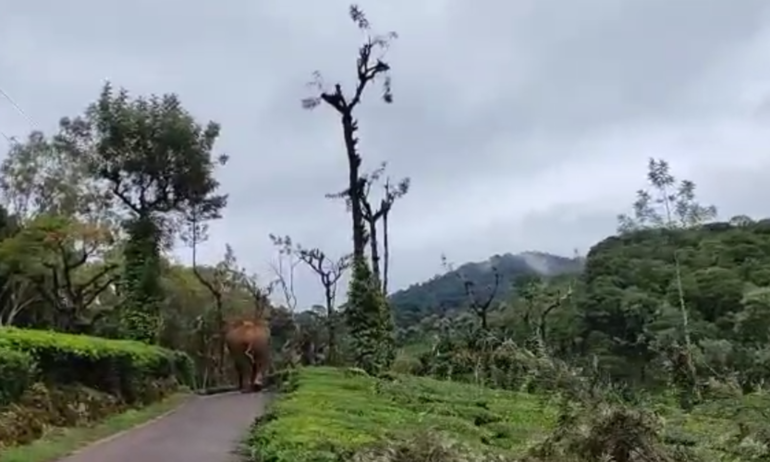 നെല്ലിയാമ്പതി ലില്ലി എസ്റ്റേറ്റിന് സമീപം കാട്ടനയിറങ്ങി; ഗതാഗതം തടസപ്പെട്ടു