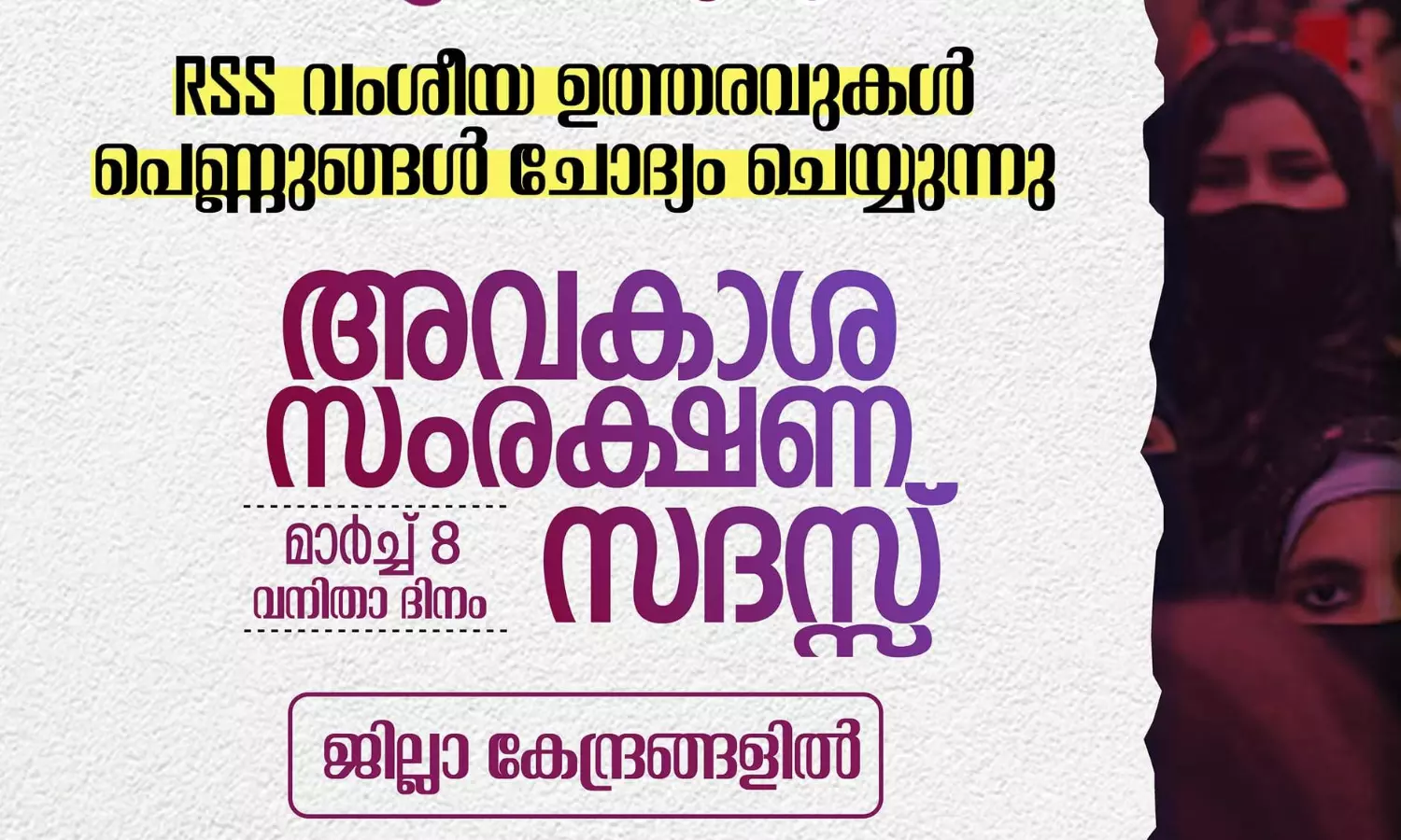 "വസ്ത്രസ്വാതന്ത്ര്യം; ആർഎസ്എസ് വംശീയ ഉത്തരവുകൾ പെണ്ണുങ്ങൾ ചോദ്യം ചെയ്യുന്നു" എന്ന തലക്കെട്ടിലാണ് അവകാശ സംരക്ഷണ സദസ്സുകൾ സംഘടിപ്പിക്കുന്നത്