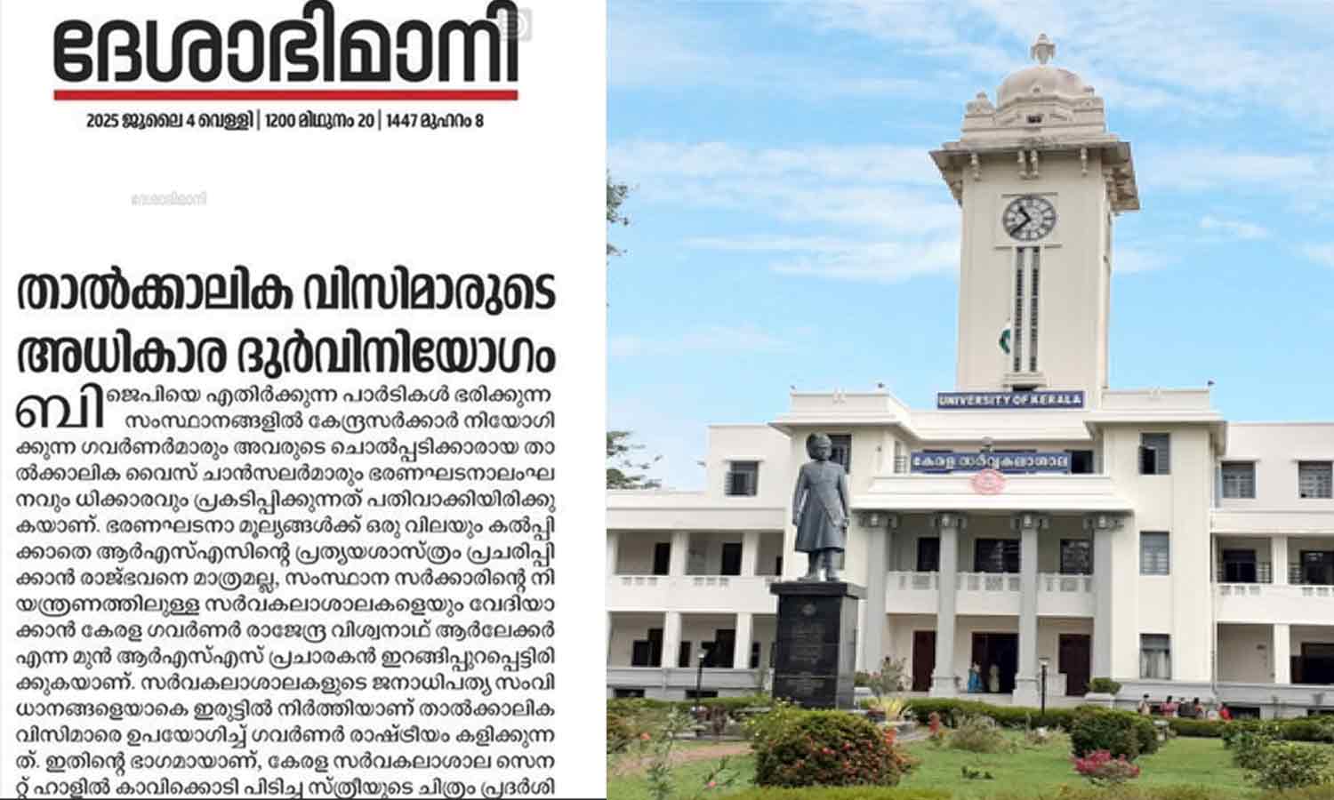 ആർഎസ്എസിന് ദാസ്യപ്പണിയെടുക്കുന്നു; കേരള സർവകലാശാല വിസിക്കെതിരെ ദേശാഭിമാനി മുഖപ്രസംഗം