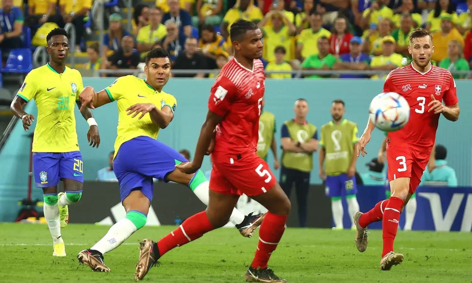 ഒമ്പത് ചുവന്ന കുപ്പായക്കാർ ബോക്സ് ഏരിയയിൽ കാവൽനിന്ന സന്ദർഭത്തിൽ തീർത്തും അവിചാരിതമായാണ് അത് സംഭവിച്ചത്. മാർക്കിഞ്ഞോസ് ഇടതുഭാഗത്ത് വിനിഷ്യസിന് പന്ത് നൽകുമ്പോൾ മറ്റൊരു ഹാർഡ് റൺ കൂടി നിർവീര്യമാക്കേണ്ടി വരും സ്വിസ്സുകാർക്ക് എന്നേ തോന്നിയുള്ളൂ. എന്നാൽ ബോക്സ് ഏരിയയിലേക്ക് പോകുന്നതിനു പകരം വിനിഷ്യസ് ഗോളിനു സമാന്തരമായി ഡി സർക്കിളിനു നേരെയാണ് പന്തുമായി പാഞ്ഞത്. ആ പാച്ചിലിൽ പന്ത് റോഡ്രിഗോയ്ക്കു തട്ടുകയും ഇടതുവശത്തേക്ക് കുതിക്കുകയും ചെയ്തു. വിനിഷ്യസിന്റെ ആ പാസ് കളിയുടെ വേഗം കുറക്കുമെന്ന് ധരിച്ച സ്വിസ് ഡിഫന്റർമാരെ ഞെട്ടിച്ചുകൊണ്ട് റോഡ്രിഗോ പന്ത് തൊട്ടുമുന്നിലേക്ക് ബോക്സിലേക്കു തള്ളുന്നു. അവിടെ നാല് ഡിഫന്റർമാർ തീർത്ത ഒരു ചതുരത്തിലേക്ക് നിരങ്ങിക്കയറിയ കാസമിറോ, ഉയർന്നുനിലത്തുവീണ പന്ത് പൊങ്ങുന്ന മാത്രയിൽ കരുത്തുറ്റൊരു വോളി തൊടുക്കുന്നു. സ്വതന്ത്രനായി കാസമിറോ പന്തിനു നൽകിയ പ്രഹരത്തിന്റെ ശേഷി സ്വിസ്സുകാർ മനസ്സിലാക്കുന്നത് പന്ത് വലയിലേക്ക് കുതിച്ചുകയറിയപ്പോഴാണ്. എന്താണ് സംഭവിച്ചതെന്ന് യാൻ സോമറിന് മനസ്സിലാകുംമുമ്പേ ആ ഗോൾ സംഭവിച്ചു കഴിഞ്ഞിരുന്നു. ഏറ്റവും വലിയ പ്രതിസന്ധി ഘട്ടത്തിലേക്ക് കരുതിവെച്ചതു പോലൊരു അസ്വാഭാവികത ആ ഗോളിനും അതിലേക്കുള്ള ചലനങ്ങൾക്കുമുണ്ടായിരുന്നു.