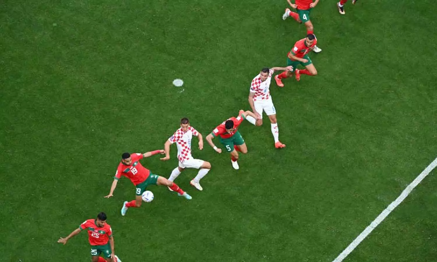 അവസാന മിനുട്ടുകളിൽ ക്രൊയേഷ്യ കളിച്ച ഹൈ ഇന്റൻസിറ്റി ഗെയിമൊഴിച്ചാൽ ആദ്യപകുതി സിംഹഭാഗവും അറ്റ്ലസ് സിംഹങ്ങളെന്നു വിളിപ്പേരുള്ള മൊറോക്കോയുടെ അധീനതയിലായിരുന്നു. തുറന്ന ഗോളവസരങ്ങളും ബോക്സിലെ ഉത്കണ്ഠാ നിമിഷങ്ങളും കുറവായ മിഡ്ഫീൽഡ് ബാറ്റിലായിരുന്നെങ്കിലും കളി ആവേശകരമാക്കിയത് ആഫ്രിക്കൻ ടീമാണ്. ഇരുടീമുകളിൽ കൂടുതൽ അഭിനിവേശവും ശ്രദ്ധയും പുലർത്തിയ അവർ ലൂക്കാ മോഡ്രിച്ചും പെരിസിച്ചും കൊവാചിച്ചുമെല്ലാമുള്ള യൂറോപ്യൻ ടീമിന് ജീവിതം ദുസ്സഹമാക്കി. പന്ത് കാൽക്കലുള്ളപ്പോൾ അതിവേഗം മൈതാനത്തിന്റെ ഇരുവശങ്ങളിലേക്ക് നീക്കുകയും നഷ്ടപ്പെടുമ്പോൾ ധൈര്യപൂർവം ടാക്കിൾ ചെയ്ത് വീണ്ടെടുക്കുകയും ചെയ്ത അവർ അതിവേഗതയിൽ ഫൈനൽ തേഡ് ലക്ഷ്യമാക്കി നീങ്ങി. വലതു വിങ് ബാക്കെങ്കിലും ഒരു അറ്റാക്കിങ് മിഡ്ഫീൽഡറെപ്പോലെ പറന്നുകളിച്ച അഷ്റഫ് ഹക്കീമി, റുമൈൻ സയ്യാശും നായിഫ് അഗർദും തീർത്ത കുറ്റമറ്റ പ്രതിരോധനിരയ്ക്കു തൊട്ടുമുന്നിൽ നിലയുറപ്പിച്ച് പന്തിന്റെ സഞ്ചാരദിശയെ നിർണയിക്കുകയും എതിരാക്രമണങ്ങളെ മുനയൊടിക്കുകയും ചെയ്തുകൊണ്ടിരുന്ന സുഫ്യാൻ അംറബാത്ത്, വിങ്ങുകളിൽ ഒരേ ആവേശത്തോടെ ഭീതിയുണർത്തിയ സുഫ്യാൻ ബൂഫലും ഹക്കീം സിയെച്ചും... പരിചയസമ്പത്തും യുവത്വവും ചേർന്ന ക്രൊയേഷ്യൻ ഡിഫൻസ് അടിസ്ഥാന തത്വങ്ങൾ പാലിച്ചതിനാൽ മാത്രം അവരുടെ മൂർച്ചയേറിയ നീക്കങ്ങൾ മുറിക്കാനും വിഫലമാക്കാനും കഴിഞ്ഞു. അവസാന നിമിഷങ്ങളിൽ ബൂഫലിനെ വലിച്ച് പരിചയക്കുറവുള്ള അബ്ദെ എസ്സെൽസുലിയെ ഇറക്കിയ തീരുമാനം മാത്രമാണ് പാളിപ്പോയതായി തോന്നിയത്.