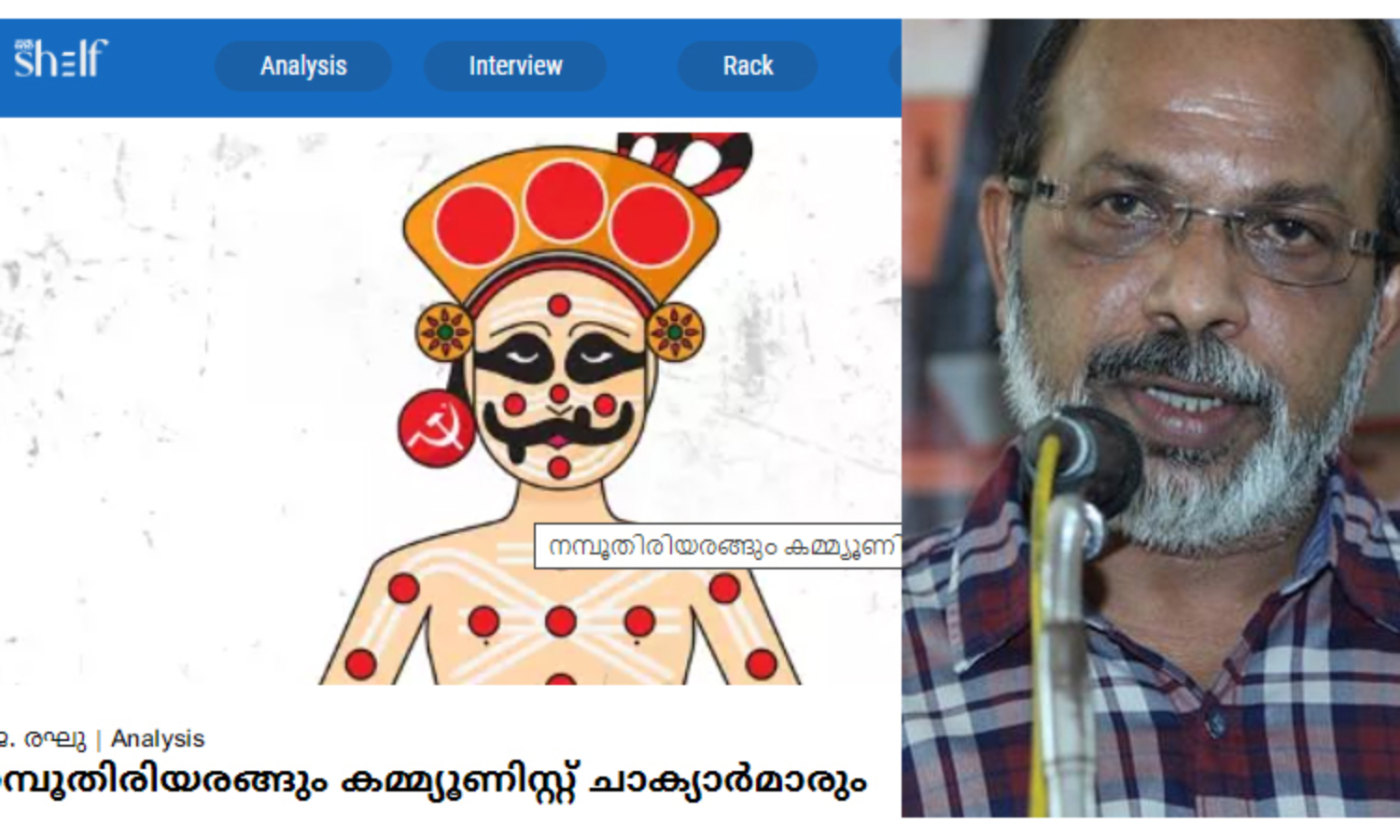 'നമ്പൂതിരിയരങ്ങും കമ്മ്യൂണിസ്റ്റ് ചാക്യാര്മാരും' ലേഖനത്തിന്റെ ലിങ്ക്: https://www.mediaoneonline.com/mediaone-shelf/analysis/political-satire-on-cpim-kerala-188684