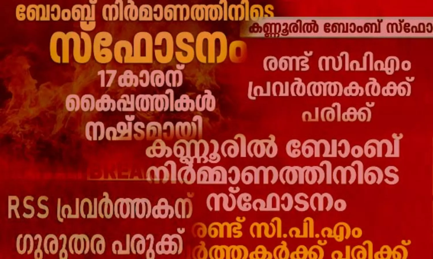 ഏപ്രില് ആദ്യവാരത്തില് കണ്ണൂരിലും തിരുവനന്തപുരത്തും സി.പി.എം, ആര്.എസ്.എസ് പ്രവര്ത്തകര് ഉള്പ്പെട്ട സ്ഫോടക ശേഖരങ്ങള് പിടികൂടിയിരുന്നു. സ്ഫോടനങ്ങളും നടന്നു. പരിക്കും അംഗഭംഗവും സംഭവിച്ചു. പതിവു കക്ഷിരാഷ്ട്രീയ ചര്ച്ചക്കും കോലാഹലങ്ങള്ക്കും പരസ്പരം പഴിചാരലിനും ശേഷം ഈ സംഭവവും ഏറെ താമസിയാതെ മറവിയിലേക്ക് പിന്വാങ്ങി. മുന്നോട്ടുപോകാന് മാധ്യമങ്ങളും ശ്രമിച്ചില്ല. മുഖ്യധാരാ പാര്ട്ടികള് മുതല് ഹിന്ദുത്വര് വരെ ഉള്പ്പെട്ട അക്രമസംഭവങ്ങളുടെ പൊതുരീതി ഇതാണ്. ഭാഷാപരമായ അവതരണത്തിന്റെ പ്രത്യേകതകൊണ്ടുകൂടിയാണ് ഈ 'മറവി' സുസാധ്യമാകുന്നത്.
