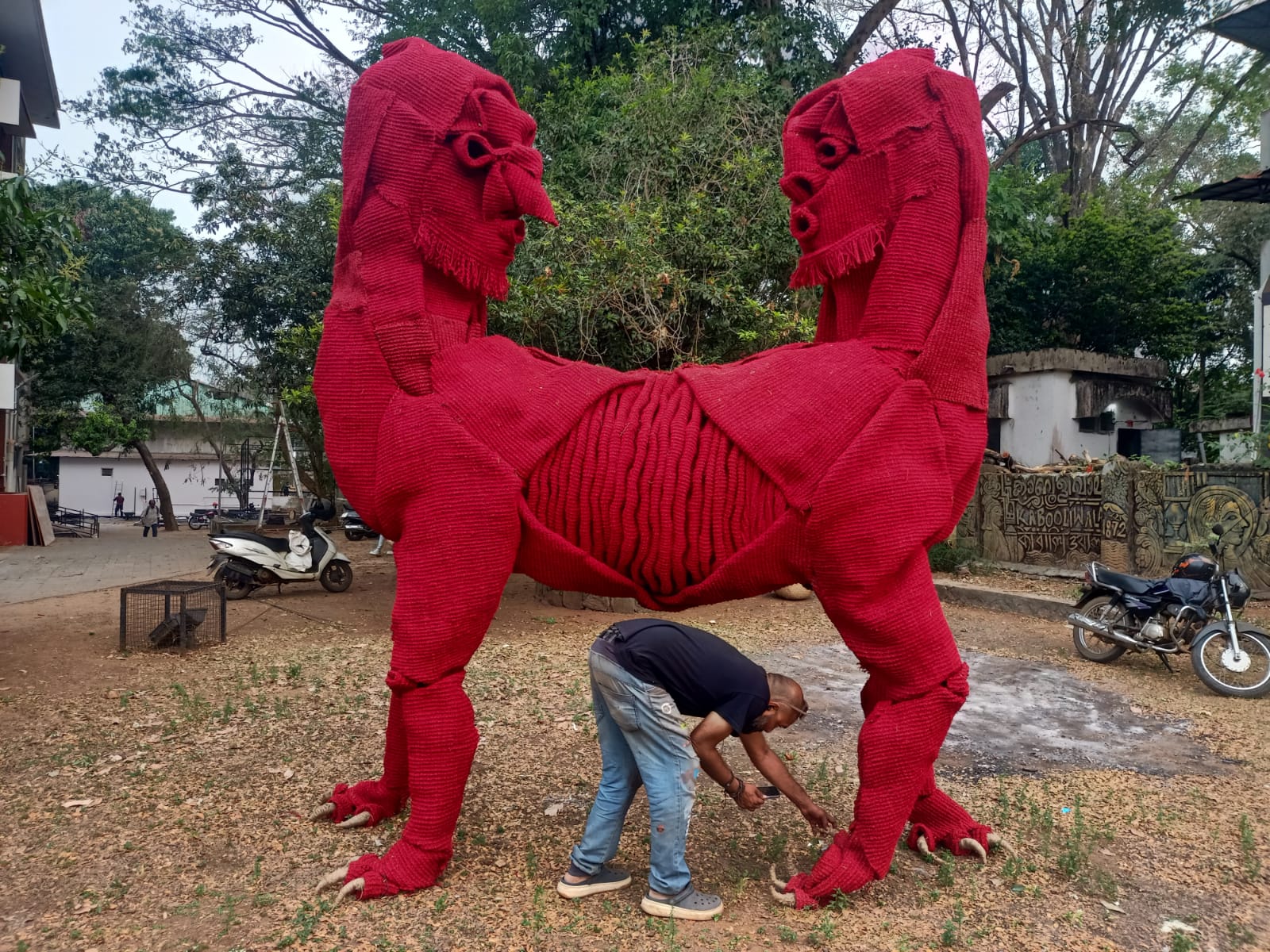 'കാച്ചണോ, ചുടണോ' - തുപ്പേട്ടന്റെ പ്രശസ്ത നാടകം 'ഡബ്ള് ആക്ടി'ലെ സംഭാഷണമാണിത്. മനുഷ്യ മനസ്സിന്റെ ഇരുഭാവങ്ങളാണ് നാടകം വരച്ചുകാണിക്കുന്നത്. രാജ്യാന്തര നാടകോത്സവ (ഇറ്റ്ഫോക്ക്) വേദിയായ സംഗീത നാടക അക്കാദമി അങ്കണത്തില് ഇറ്റ്ഫോക്കിന്റെ തന്നെ ഭാഗമായി ആര്ട്ടിസ്റ്റ് സിദ്ധാര്ത്ഥ് ചെയ്ത ഇന്സ്റ്റലേഷന് കണ്ടാല് തുപ്പേട്ടന്റെ ഈ നാടകം ഓര്മ വരും. ഒറ്റനോട്ടത്തില് കെട്ടുകുതിരയാണെന്ന് തോന്നുന്ന, ചൂടിപ്പടം (കയര് മാറ്റ്) കൊണ്ട് ചെയ്ത ശില്പത്തിന് രണ്ട് മനുഷ്യമുഖങ്ങളാണ്. രണ്ടു ഭാവങ്ങളുള്ള മുഖങ്ങള്. കയ്യില് കിട്ടുന്ന പാഴ്വസ്തുക്കള് കൊണ്ട് ശില്പങ്ങള് മെനയുന്ന സിദ്ധാര്ത്ഥിന്റെ ദിവസങ്ങളെടുത്ത നിര്മിതി.