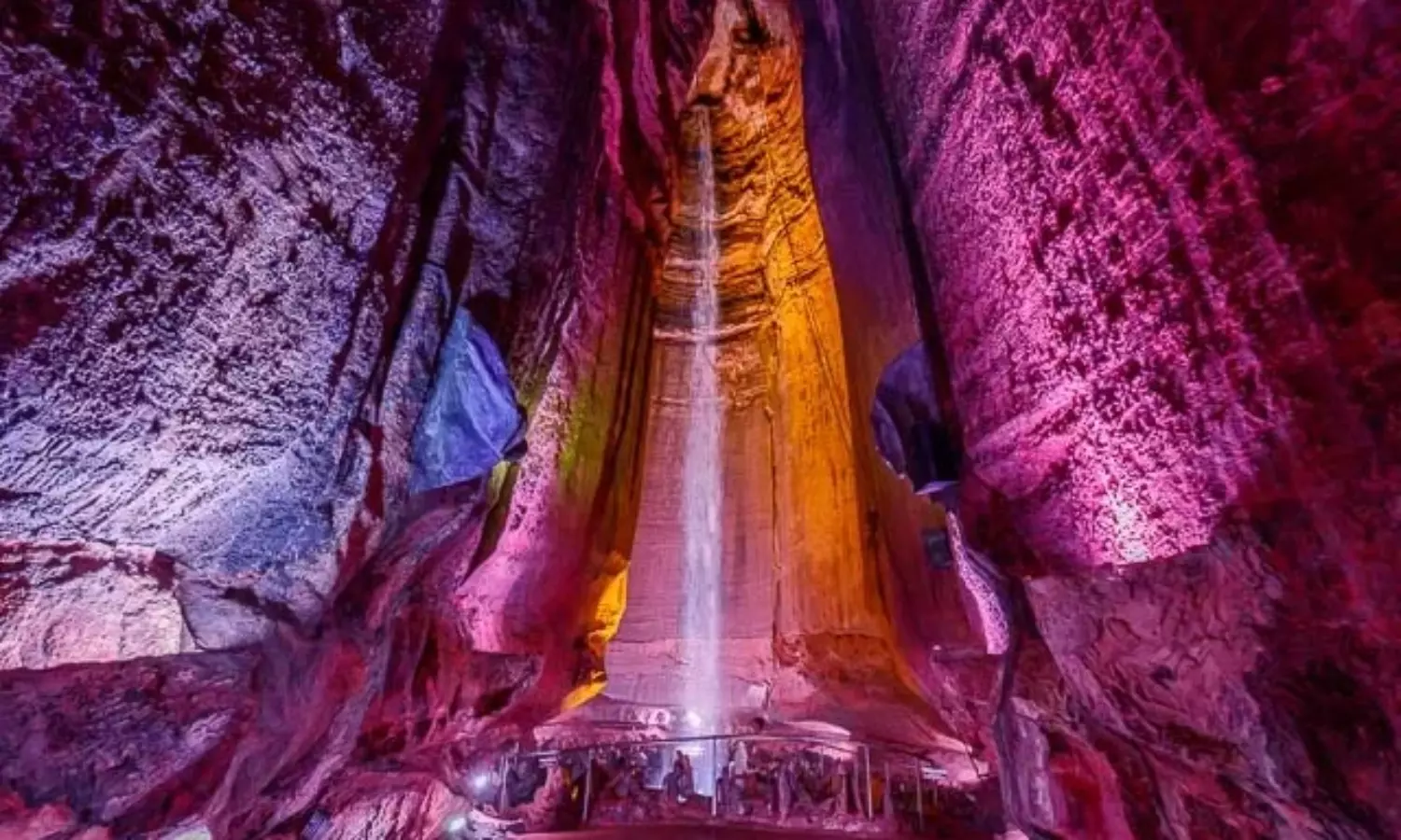 അമേരിക്കയിലെ ടെന്നസ്സി പ്രവിശ്യയിലുള്ള റൂബി ഫാള്സിനെ പറ്റി കേട്ടിരുന്നു എങ്കിലും അത് കാണാനുള്ള ഭാഗ്യം ഉണ്ടായത് അടുത്ത കാലത്താണ്. ആ സ്റ്റേറ്റിലെ പ്രധാന പട്ടണമായ ചാറ്റനൂഗയില് ആണ് ആദ്യം പോയത്. പട്ടണ മധ്യത്തില് നിന്ന് ഏതാനം കിലോമീറ്ററുകള് കൂടി സഞ്ചരിച്ചാല് ലുക്ക് ഔട്ട് മൌണ്ടന് കാണാം. ഇതാണ് റൂബി ഫാള്സിന്റെ പ്രധാന കവാടം. ഇനി ഈ വെള്ളച്ചാട്ടത്തെപ്പറ്റി പറയാം. 145 അടി ഉയരത്തില് നിന്ന് താഴേക്ക് പതിക്കുന്ന ഈ നീരൊഴുക്ക് ഭൂതലത്തില് നിന്ന് 1120 അടി താഴ്ചയില് നിന്നാണ് ഉത്ഭവിക്കുന്നത്. അവിടെ നിന്ന് പാറയിടുക്കുകളിലൂടെ ഒഴുകി ടെന്നസി നദിയില് ചേരുന്നു.