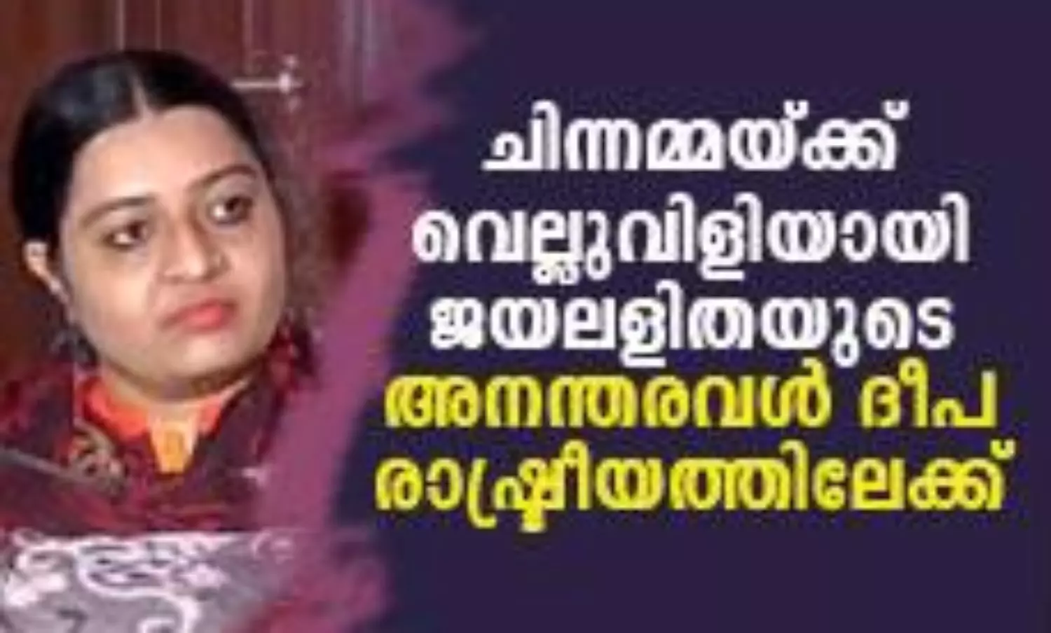 ചിന്നമ്മയ്ക്ക് വെല്ലുവിളിയായി ജയലളിതയുടെ അനന്തരവള് ദീപ രാഷ്ട്രീയത്തിലേക്ക്