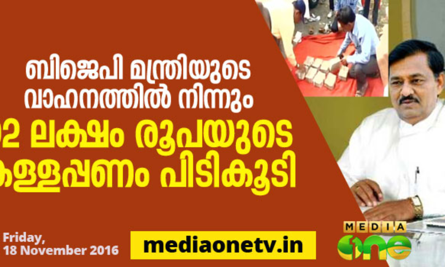 ബിജെപി മന്ത്രിയുടെ വാഹനത്തില് നിന്നും 92 ലക്ഷം രൂപയുടെ കള്ളപ്പണം പിടികൂടി