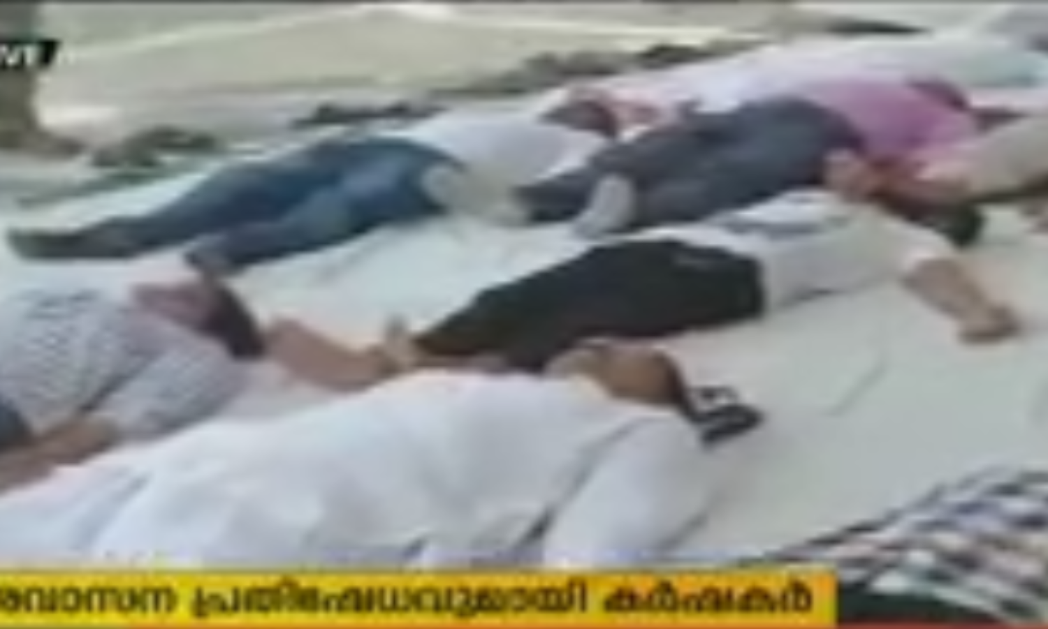 മോദി സര്ക്കാരിനോടുള്ള പ്രതിഷേധാര്ത്ഥം അന്താരാഷ്ട്ര യോഗാദിനത്തില് ശവാസന പ്രതിഷേധവുമായി കര്ഷകര്. പ്രധാനമന്ത്രി നരേന്ദ്ര മോദിയുടെ ലക്നൗവിലെ യോഗ പ്രകടനത്തിന് സമാനമായി രാജ്യവ്യാപകമായി ശവാസനം നടത്തിയായിരുന്നു കര്ഷകര് പ്രതിഷേധിച്ചത്.