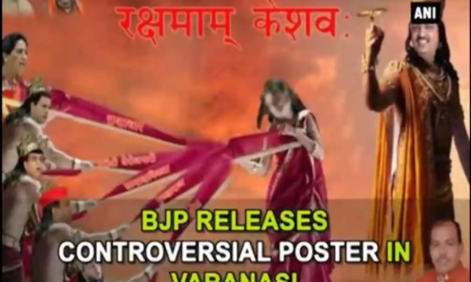ഉത്തര്പ്രദേശില് ബി.ജെ.പി സംസ്ഥാന അധ്യക്ഷനായി കേശവ് മൗര്യ സ്ഥാനമേറ്റതിനു പിന്നാലെ വരാണാസിയില് ബി.ജെ.പി പുറത്തിറക്കിയ പോസ്റ്റര് വിവാദമാകുന്നു. മഹാഭാരതത്തിലെ ഒരു സംഭവം അടിസ്ഥാനമാക്കി ഫോട്ടോഷോപ്പ് ചെയ്തിറക്കിയതാണ് പോസ്റ്റര്. കേശവ് മൗര്യയെ കൃഷ്ണനായി ചിത്രീകരിച്ചിരിക്കുന്ന പോസ്റ്ററില്, ഉത്തര്പ്രദേശിനെ ദ്രൌപതിയായും മുഖ്യമന്ത്രി അഖിലേഷ് യാദവ്, കോണ്ഗ്രസ് ഉപാധ്യക്ഷന് രാഹുല് ഗാന്ധി, ബിഎസ്പി നേതാവ് മായാവതി, എസ്പി നേതാവ് അസം ഖാന്, എ.ഐ.എം.എം എം.പി ഉവൈസി എന്നിവരെ ഉത്തര്പ്രദേശിനെ വസ്ത്രാക്ഷേപം ചെയ്യുന്ന കൌരവ സംഘമായുമാണ് ചിത്രീകരിച്ചിരിക്കുന്നത്. സംഭവം വിവാദമായതോടെ പോസ്റ്ററിനു പിന്നില് ബി.ജെ.പിയുടെ കരങ്ങളില്ലെന്ന വിശദീകരണവുമായി പാര്ട്ടി നേതാക്കള് രംഗത്തുവന്നു. 'പോസ്റ്റര് താന് കണ്ടിട്ടില്ല. കാണാതെ പ്രതികരിക്കാന് കഴിയില്ല. ഇത്തരമൊരു പോസ്റ്റര് പ്രചരിക്കുന്നതായി വിവരം ലഭിച്ചിട്ടുണ്ട്. - ഇങ്ങനെയായിരുന്നു മൗര്യയുടെ പ്രതികരണം. പോസ്റ്ററിന്റെ ഒരു മൂലയില് മോദിയുടെയും അമിത് ഷായുടെയും ചിത്രവുമുണ്ട്. ബി.ജെ.പി നേതാവ് രൂപേഷ് പാണ്ഡെ ഈ പോസ്റ്റര് തന്റെ ഓഫീസിലും വീട്ടിലും പതിച്ചിട്ടുണ്ട്. കൃഷ്ണന്റെ മറ്റൊരു പേരാണ് കേശവ് എന്നും മൗര്യ, ഉത്തര്പ്രദേശിനെ എസ്.പി, ബി.എസ്.പി, കോണ്ഗ്രസ് ഭരണത്തില് നിന്നു മോചിപ്പിക്കുമെന്ന് ഉറപ്പാണെന്നും പാണ്ഡെ പ്രതികരിച്ചു.