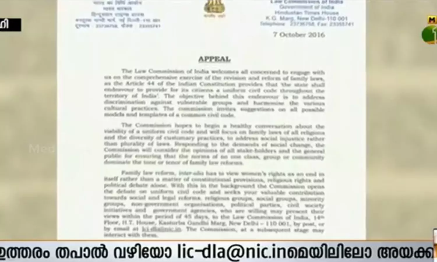 ദേശീയ നിയമ കമ്മീഷന്റെ വെബ്സൈറ്റിലാണ് 16 ചോദ്യങ്ങളടങ്ങിയ ചോദ്യാവലിയുള്ളത്. ഉത്തര്പ്രദേശില് നിയമസഭാ തെരഞ്ഞെടുപ്പ് ആസന്നമായ സാഹചര്യത്തില് കൂടിയാണ് കേന്ദ്രം ഏകസിവില്കോഡ് വിഷയം സജീവമാക്കുന്നത്.