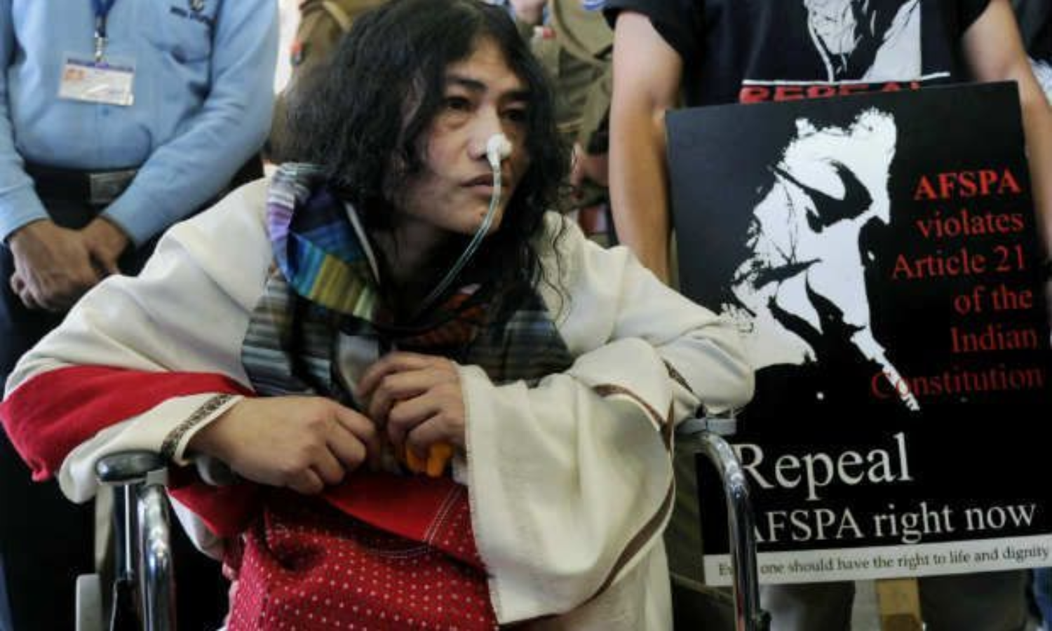16 വര്ഷത്തെ നിരാഹാര സമരത്തിലൂടെ ഉരുക്ക് വനിത എന്ന വിശേഷണം സ്വന്തമാക്കിയ ഇറോം ശര്മിളയുടെ ജീവിതം ഭരണകൂട ഭീകരതക്കെതിരായ പോരാട്ടത്തിലെ സമാനതകളില്ലാത്ത അധ്യായമാണ്. മനസാക്ഷിയുടെ തടവുകാരി എന്നാണ് ആംനെസ്റ്റി ഇന്റര്നാഷണല് ശര്മിളയെ വിശേഷിപ്പിച്ചത്.