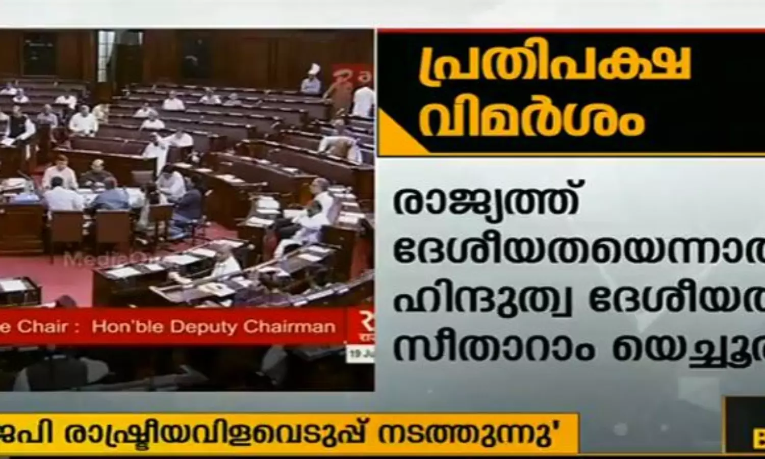 ആള്കൂട്ടകൊലപാതകങ്ങളിലൂടെ ബിജെപി രാഷ്ട്രീയ വിളവെടുപ്പ് നടത്തുകയാണെന്ന് പ്രതിപക്ഷം. ഹിന്ദുത്വ അജണ്ടയുടെ മറവിലാണ് ആള്കൂട്ടകൊലപാതകങ്ങള് നടക്കുന്നതെന്ന് സീതാറാം യെച്ചൂരി കുറ്റപ്പെടുത്തി. ചര്ച്ചക്കിടെ ഹിന്ദു ദൈവങ്ങള്ക്കെതിരെ എസ്പി എംപി നരേഷ് അഗര്വാള് നടത്തിയ പരാമര്ശം പ്രതിഷേധത്തിനിടയാക്കി.