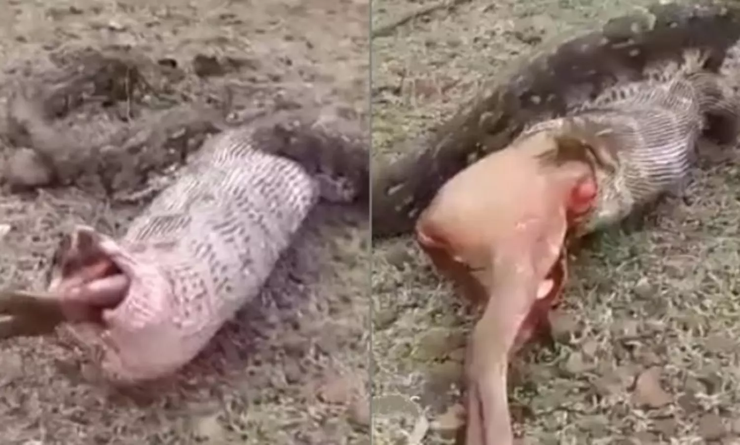 മാനിനെ വിഴുങ്ങിയ പെരുമ്പാമ്പിന് പണി കിട്ടി, ഒടുവില് വയറിലൊതുങ്ങാതെ ഛര്ദ്ദിച്ചു; വീഡിയോ കാണാം