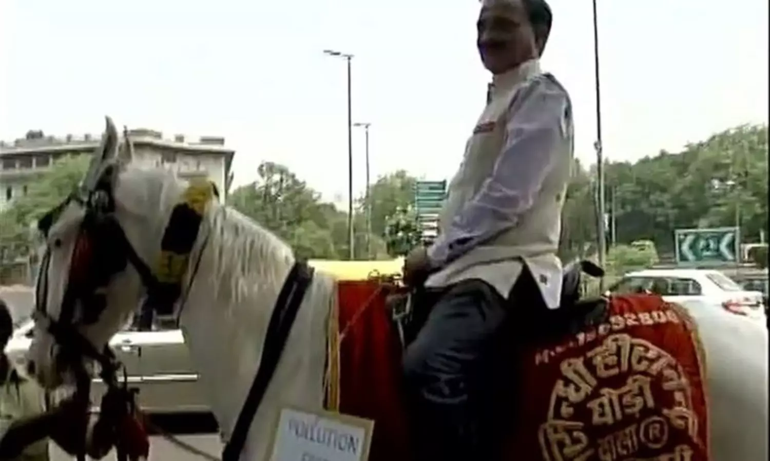 പൊലൂഷന് ഫ്രീ വെഹിക്കിള്: എം പി പാര്ലമെന്റിലെത്തിയത് കുതിരപ്പുറത്ത്