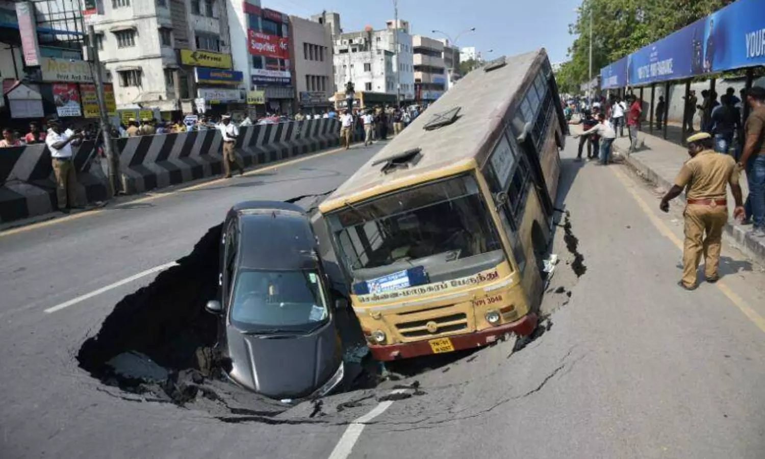 ചെന്നൈയില് ഓടിക്കൊണ്ടിരുന്ന കാറും ബസും ഗര്ത്തത്തില് അകപ്പെട്ടു