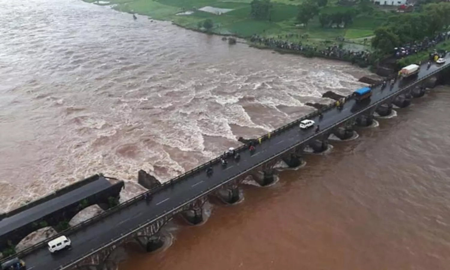 മുംബൈ - ഗോവ ഹൈവേയില് മഹദിനും പോലാദ്പൂരിനും ഇടയിലുള്ള പാലമാണ് പുലര്ച്ചെ കനത്ത മഴയെ തുടര്ന്നുണ്ടായ അതിശക്തമായ ഒഴുക്കില് തകര്ന്നത്. ഈ സമയത്ത് പാലത്തിനു മുകളിലുണ്ടായിരുന്ന രണ്ട് സ്റ്റേറ്റ് ട്രാന്സ്പോര്ട്ട് ബസ്സുകളും ഒഴുക്കില്പ്പെടുകയായിരുന്നു. രണ്ടു ബസ്സുകളിലുമായി ഉണ്ടായിരുന്ന 18 യാത്രക്കാര്, 4 ജീവനക്കാര് എന്നിവരെയും ബസ്സുകള്ക്കൊപ്പം കാണാതായി. കാണാതായവരെയും വാഹനങ്ങളും കണ്ടെത്താന് തീരസംരക്ഷണ സേന ചേതക് ഹെലികോപ്ടറും സീ കിങ്ങ് വിമാനവും ഉപയോഗിച്ച് തിരച്ചില് ആരംഭിച്ചു.