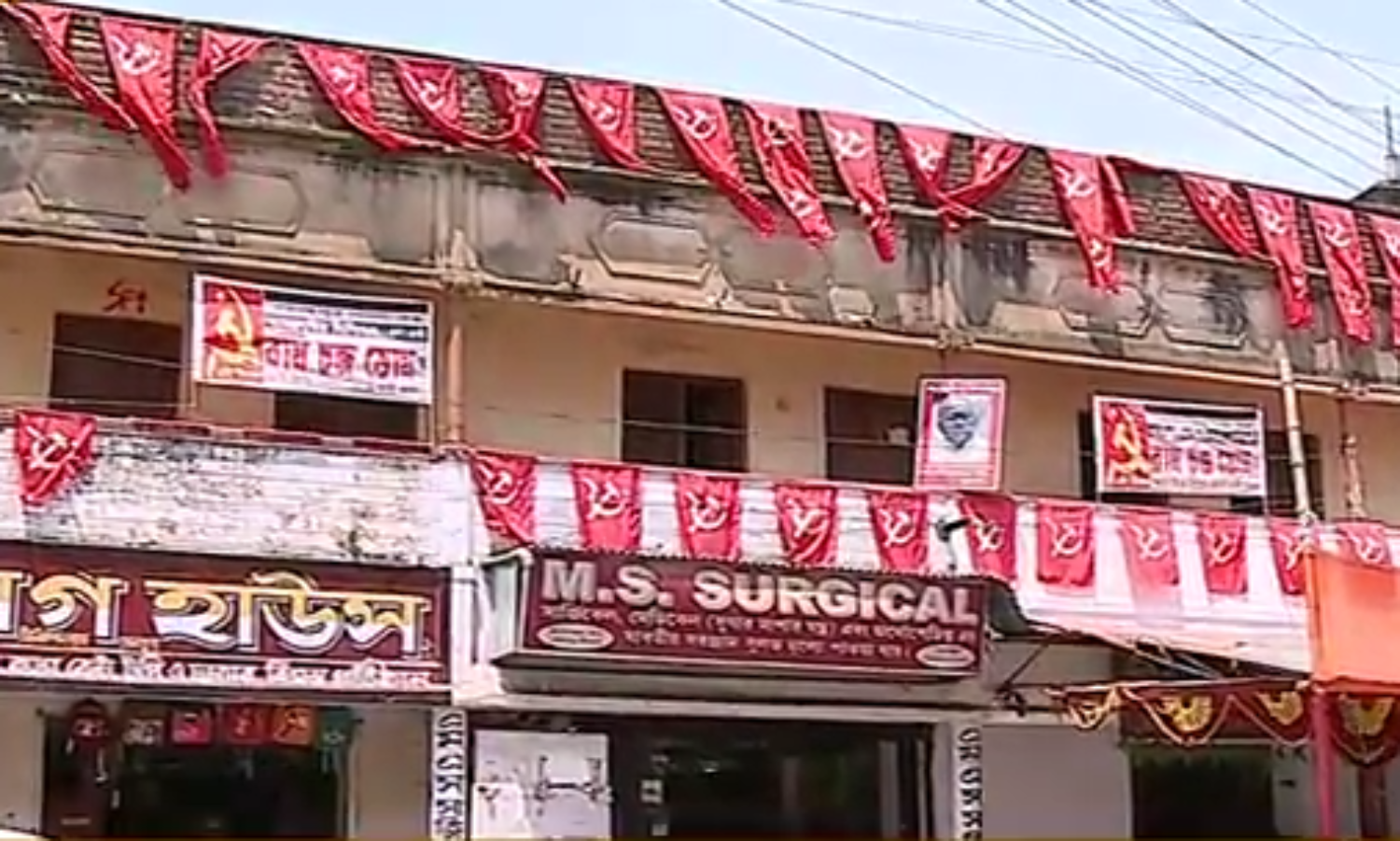 പാര്ട്ടി ഓഫീസിൽ ഉണ്ടായിരുന്ന മാര്ക്സിന്റെയും ലെനിനിന്റെയും ഏംഗൽസിന്റെയും ജ്യോതിബസുവിന്റേയുമടക്കമുള്ള ചിത്രങ്ങൾ എടുത്തുമാറ്റി.
