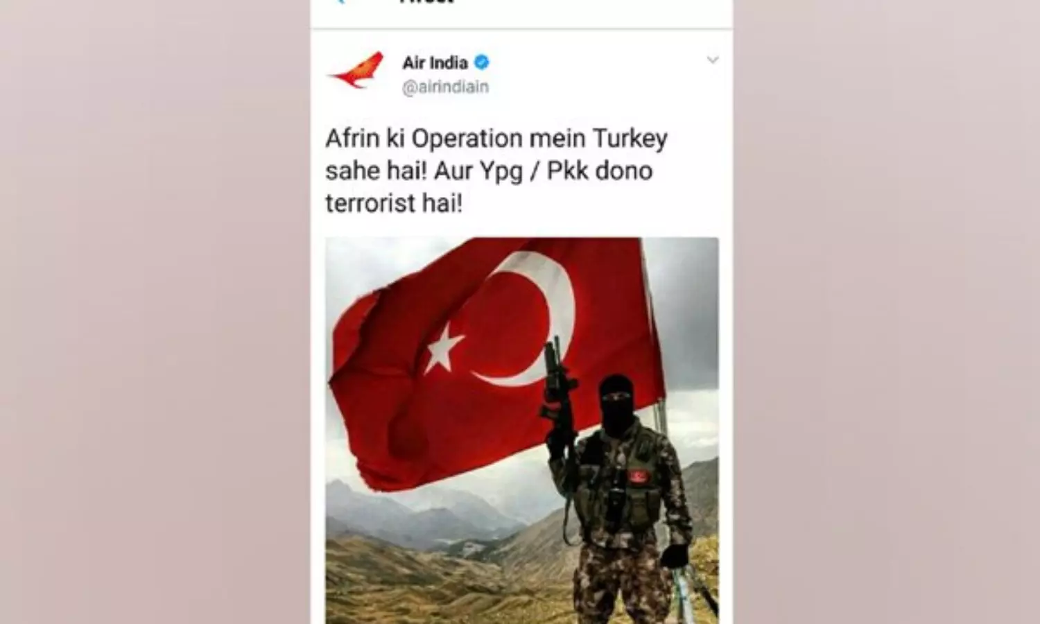 ''എയര്ഇന്ത്യയുടെ എല്ലാ വിമാനങ്ങളും റദ്ദ് ചെയ്തു, ഇനി ടര്ക്കിഷ് വിമാനത്തില് യാത്ര ചെയ്യാം''