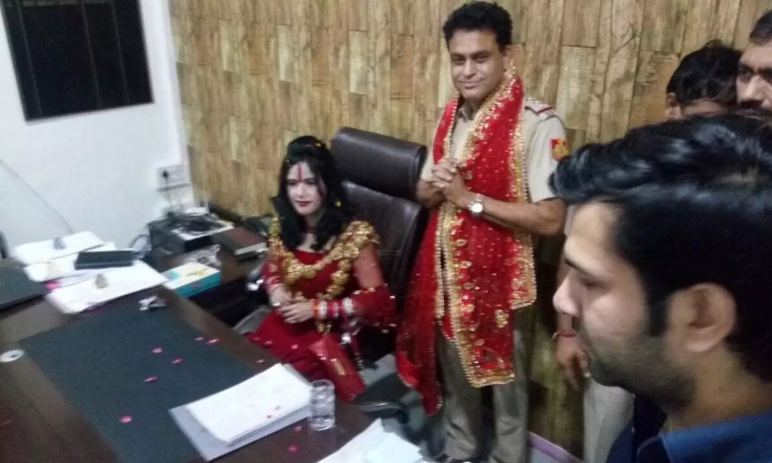 പൊലീസ് ഓഫീസറുടെ കസേരയില് ആള്ദൈവം രാധെ മാ; താണുവണങ്ങി പൊലീസ്