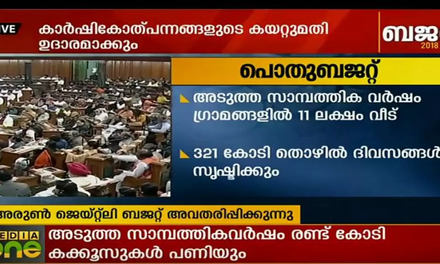 2022ഓടെ എല്ലാവര്ക്കും വീട് എന്നതാണ് ലക്ഷ്യമെന്ന് ബജറ്റ് അവതരണത്തിനിടെ ധനമന്ത്രി അരുണ് ജെയ്റ്റ്ലി പറഞ്ഞു. അടുത്ത സാമ്പത്തിക വര്ഷം ഗ്രാമങ്ങളില് 11 ലക്ഷം വീട് നിര്മിക്കും. ദരിദ്രരായ സ്ത്രീകള്ക്ക് എട്ട് കോടി സൌജന്യ പാചക വാതക കണക്ഷന് നല്കും. രണ്ട് കോടി കക്കൂസുകള് നിര്മിക്കും. ഗ്രാമീണ മേഖലയില് അടിസ്ഥാന സൌകര്യ വികസനത്തിന് 14.34 ലക്ഷം കോടി വകയിരുത്തും. 321 കോടി തൊഴില് ദിനങ്ങള് സൃഷ്ടിക്കുമെന്നും മന്ത്രി പ്രഖ്യാപിച്ചു.