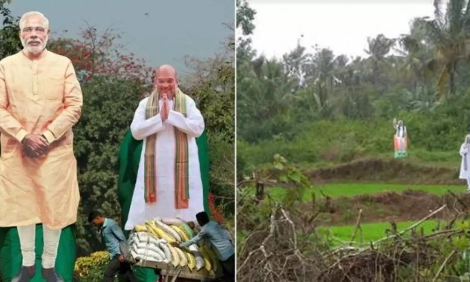 ഇത്തവണ നല്ല മഴ കിട്ടിയതിനാല് വിളവെടുപ്പ് കര്ഷകര് നേരത്തെ പൂര്ത്തിയാക്കി. ഈ സാഹചര്യത്തില് പക്ഷികളെ അകറ്റിനിര്ത്താനാണ് ഗ്രാമവാസികള് കട്ടൌട്ടുകള് ഉപയോഗിക്കുന്നത്. മോദിയുടെയും അമിത് ഷായുടെയും മാത്രമല്ല, എല്ലാ നേതാക്കളുടെയും കട്ടൌട്ടുകള് പാടങ്ങളില് ഉപയോഗിക്കുന്നുണ്ടെന്ന് കര്ഷകര് പറഞ്ഞു.
