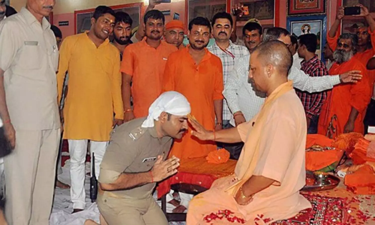 യോഗിയുടെ കാല്ക്കീഴില് മുട്ടുകുത്തി വണങ്ങി മുതിര്ന്ന പൊലീസ് ഓഫീസര്