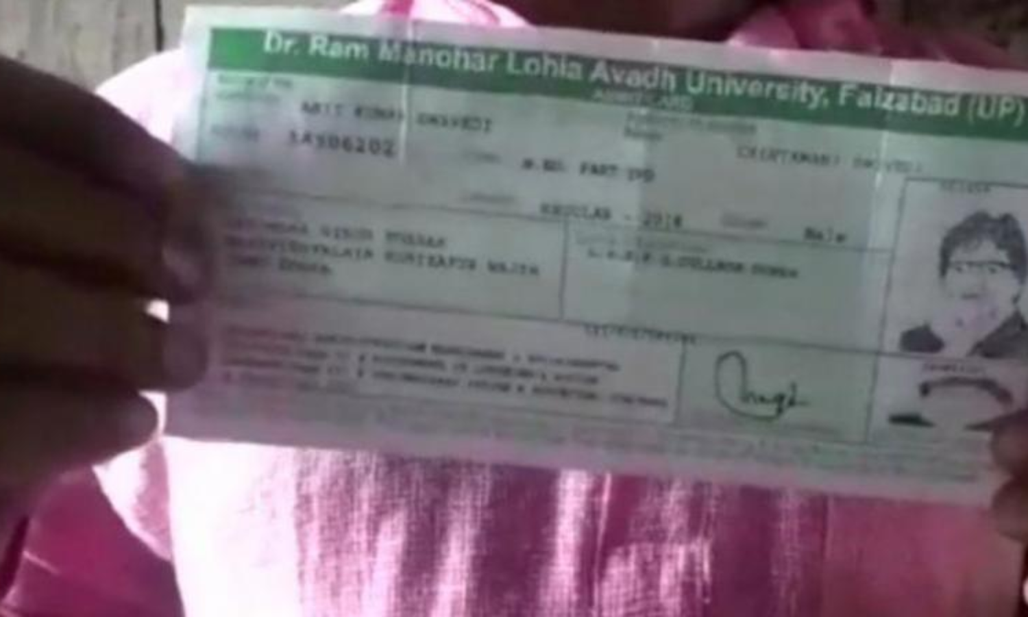 ബി.എഡ് വിദ്യാര്ഥിക്കുള്ള അഡ്മിറ്റ് കാര്ഡില് അമിതാഭ് ബച്ചന്റെ പടം. ഉത്തര്പ്രദേശ് ഫസിയാബാദിലെ ഡോ.റാം മനോഹര് ലോഹ്യ അവധ് സര്വ്വകലാശാലയുടെ അഡ്മിഷന് കാര്ഡിലാണ് ബച്ചന് കടന്നുകൂടിയത്. ഗോണ്ട ജില്ലയിലെ രവീന്ദ്ര സിംഗ് സ്മാരക് മഹാവിദ്യാലയത്തിലെ വിദ്യാര്ഥിയായ അമിതി ദിവേതിക്കാണ് ബച്ചന്റെ ചിത്രം അച്ചടിച്ച കാര്ഡ് ലഭിച്ചത്.